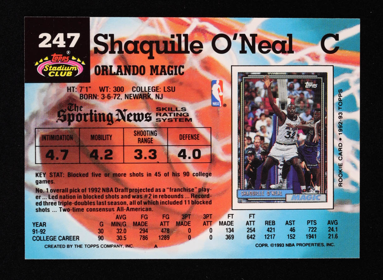 Shaquille O'Neal 1992-93 Stadium Club #247 RC