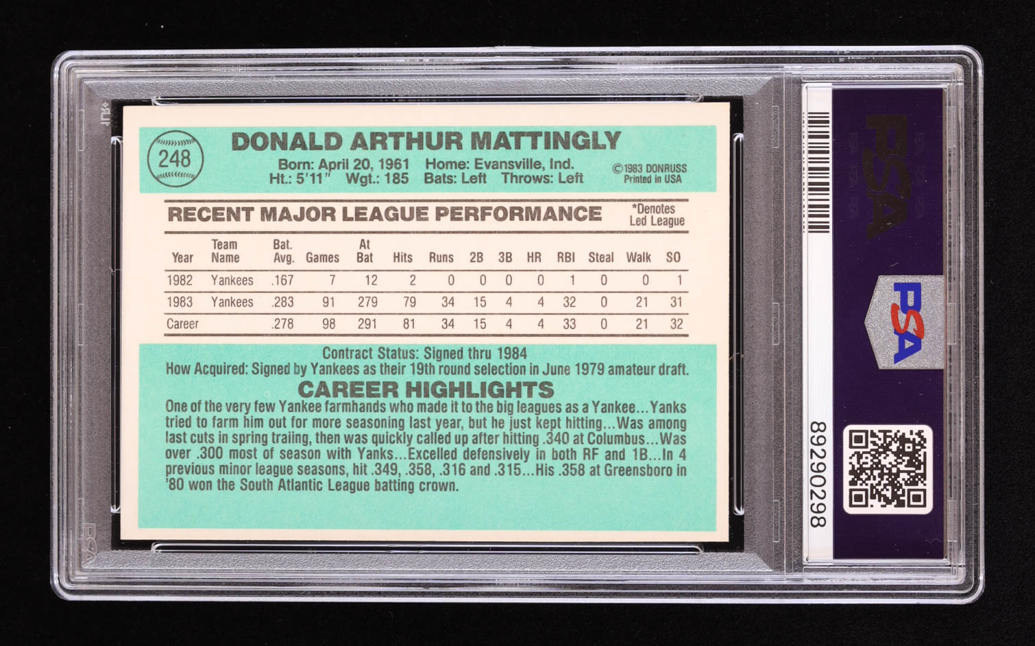 Don Mattingly Signed 1984 Donruss #248 RC (PSA | Auto 10)
