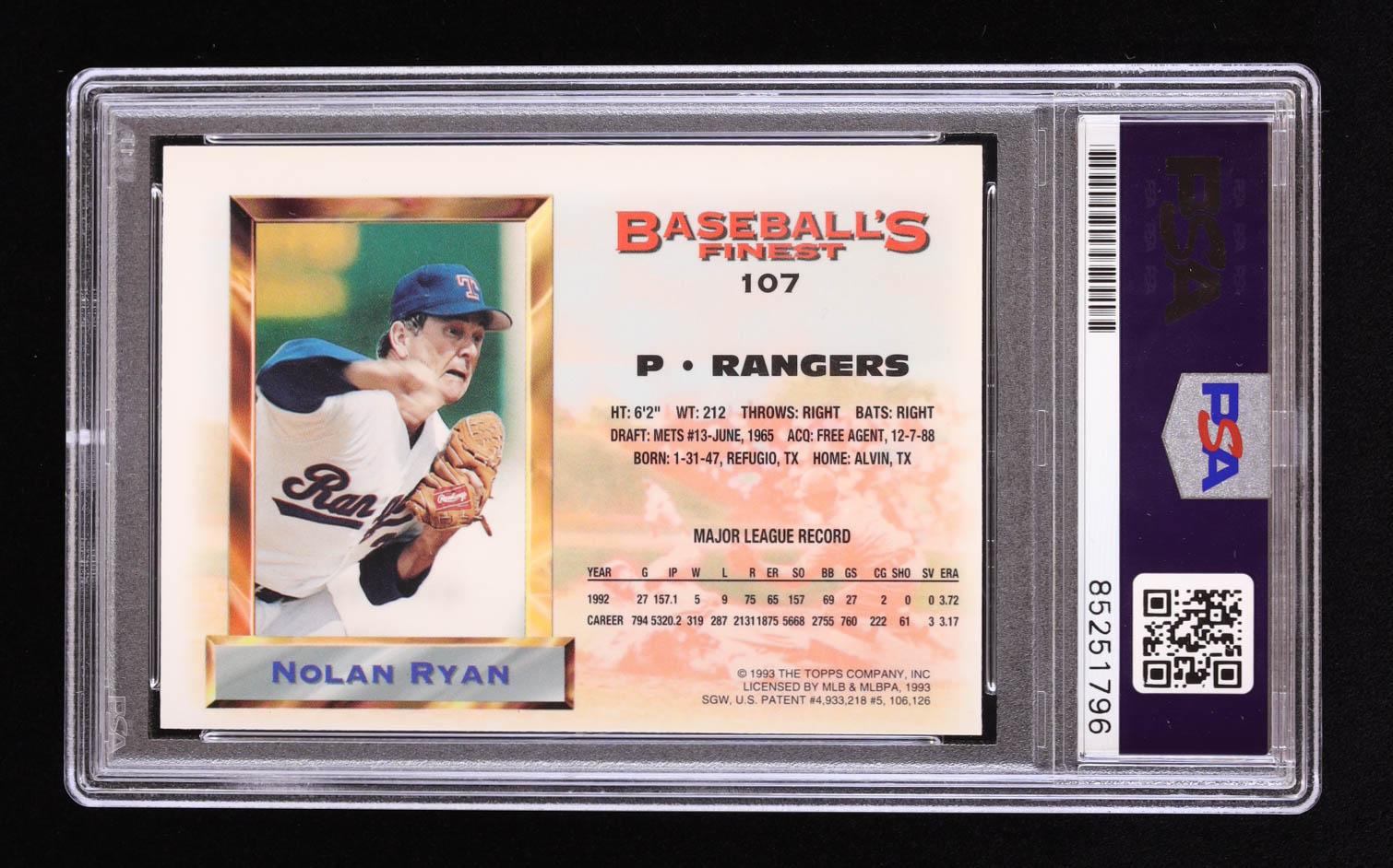 Nolan Ryan Signed 1993 Finest #107 AS Inscribed "The Ryan Express" (PSA | Auto 10)