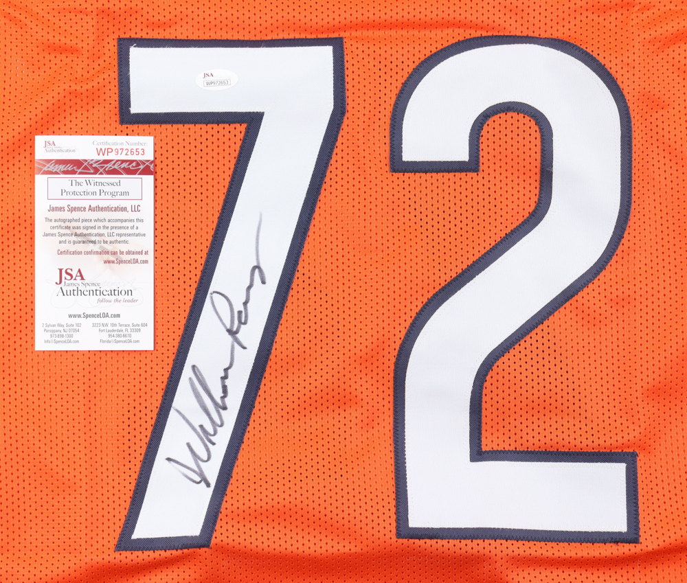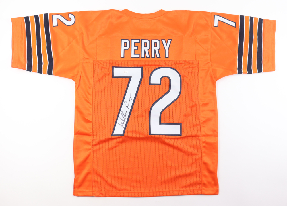 Custom jersey with everything sewn on, size XL. Hand-signed by William Perry.