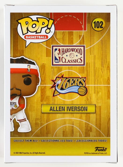 Vinyl figure measures approximately 4" tall and has been hand-signed on the packaging by Allen Iverson (Philadelphia 76ers, HOF).