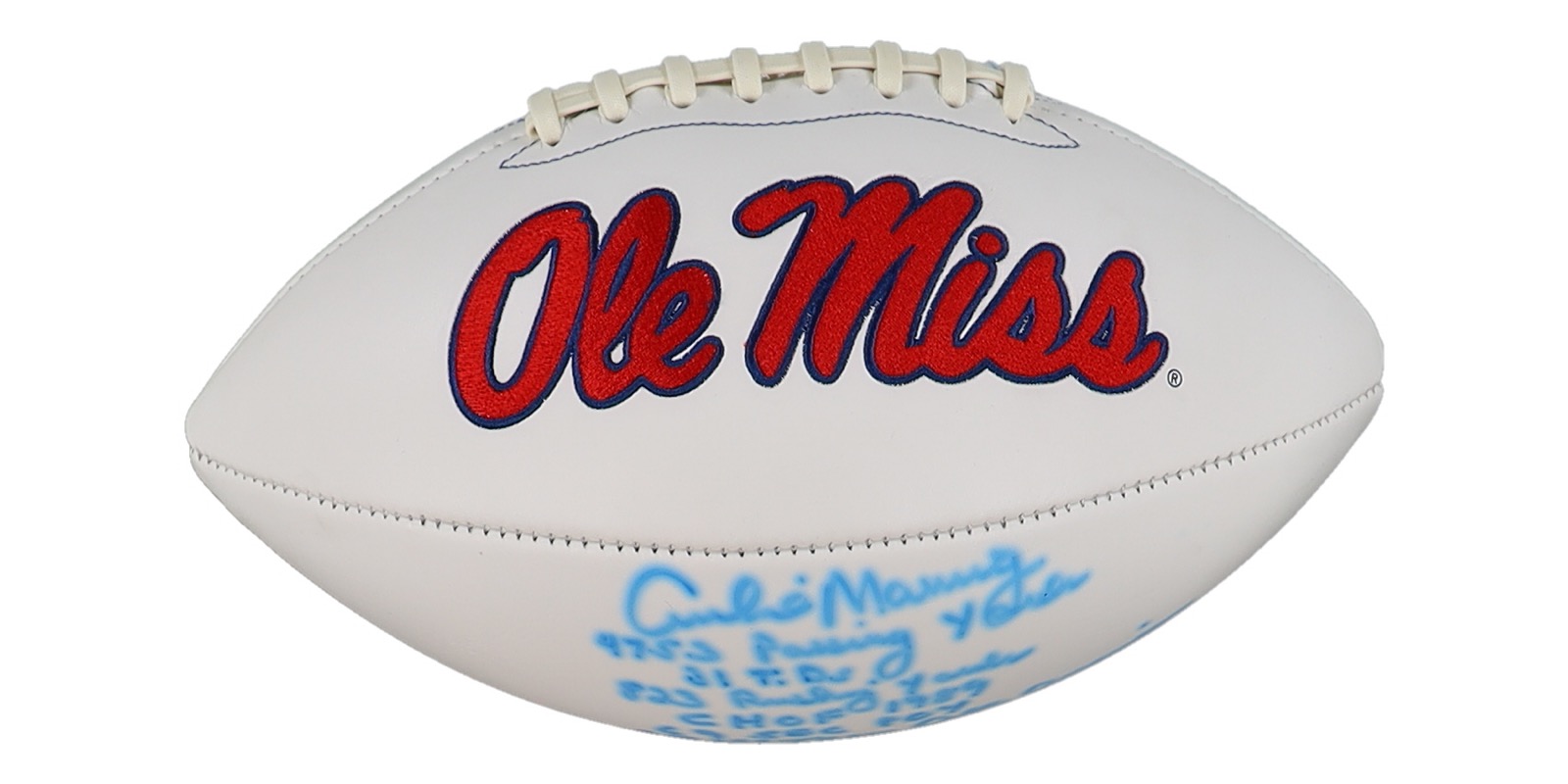Ole Miss Rebels logo football has been hand-signed and inscribed by Archie Manning.