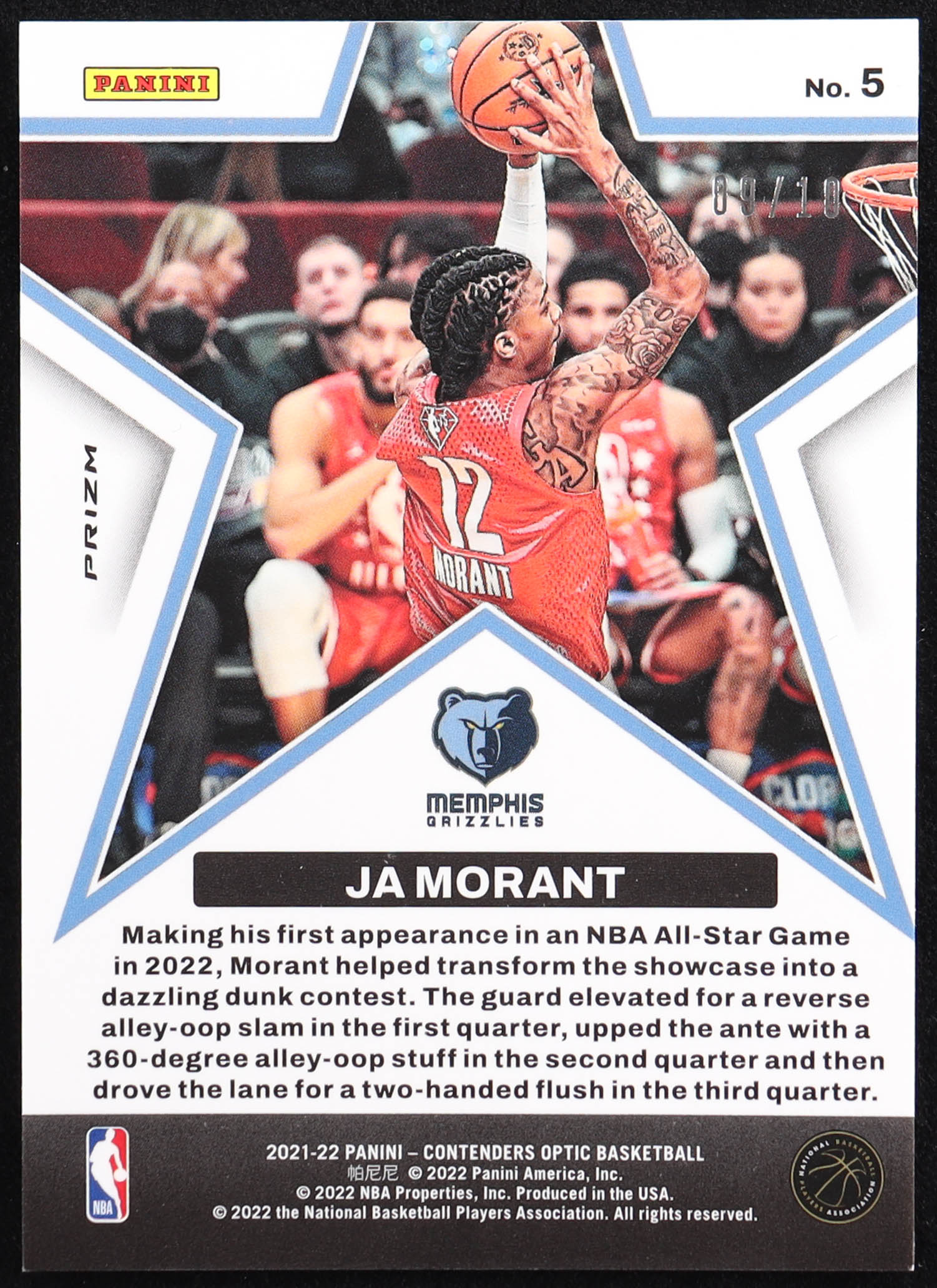 Ja Morant 2021-22 Panini Contenders Optic All Star Aspirations Gold #5 #09/10