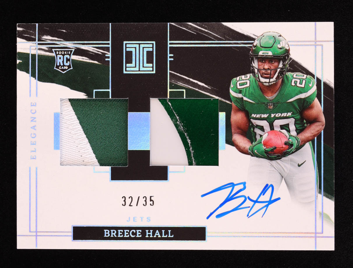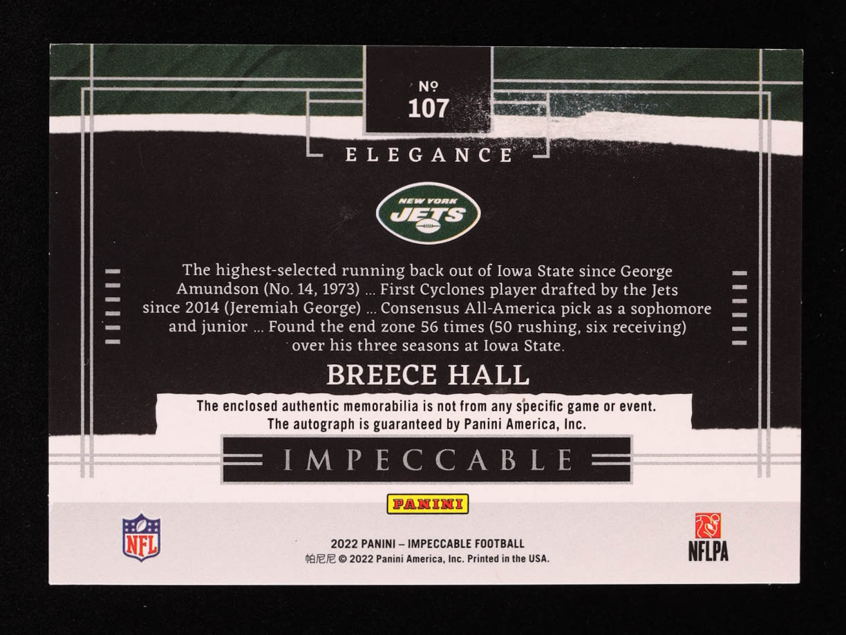 Breece Hall 2022 Panini Impeccable Elegance Rookie Helmet and Nameplate Autographs #107 RC #32/35