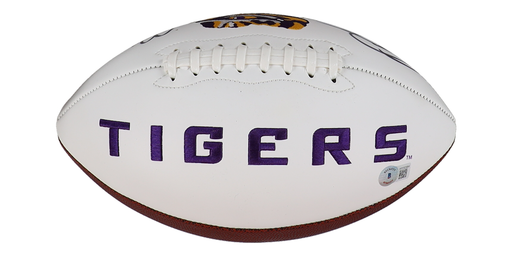 LSU Tigers logo football. Hand-signed by Justin Jefferson & Odell Beckham Jr.