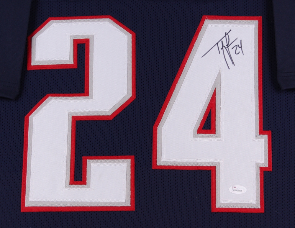 Ty Law Signed Patriots 35"x 43" Custom Framed Jersey (JSA COA)