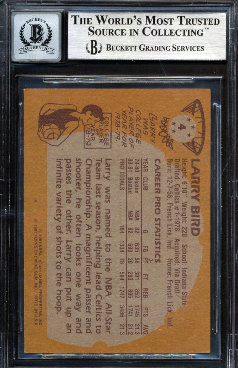Larry Bird Signed 1981-82 Topps #4 (BGS | Autograph Graded 10)