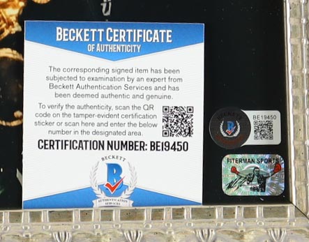 The autograph includes an official Beckett Authentication Services serially numbered hologram and matching COA for authenticity purposes and as well as an official Mike Tyson hologram from Fiterman Sports Group for authenticity purposes.