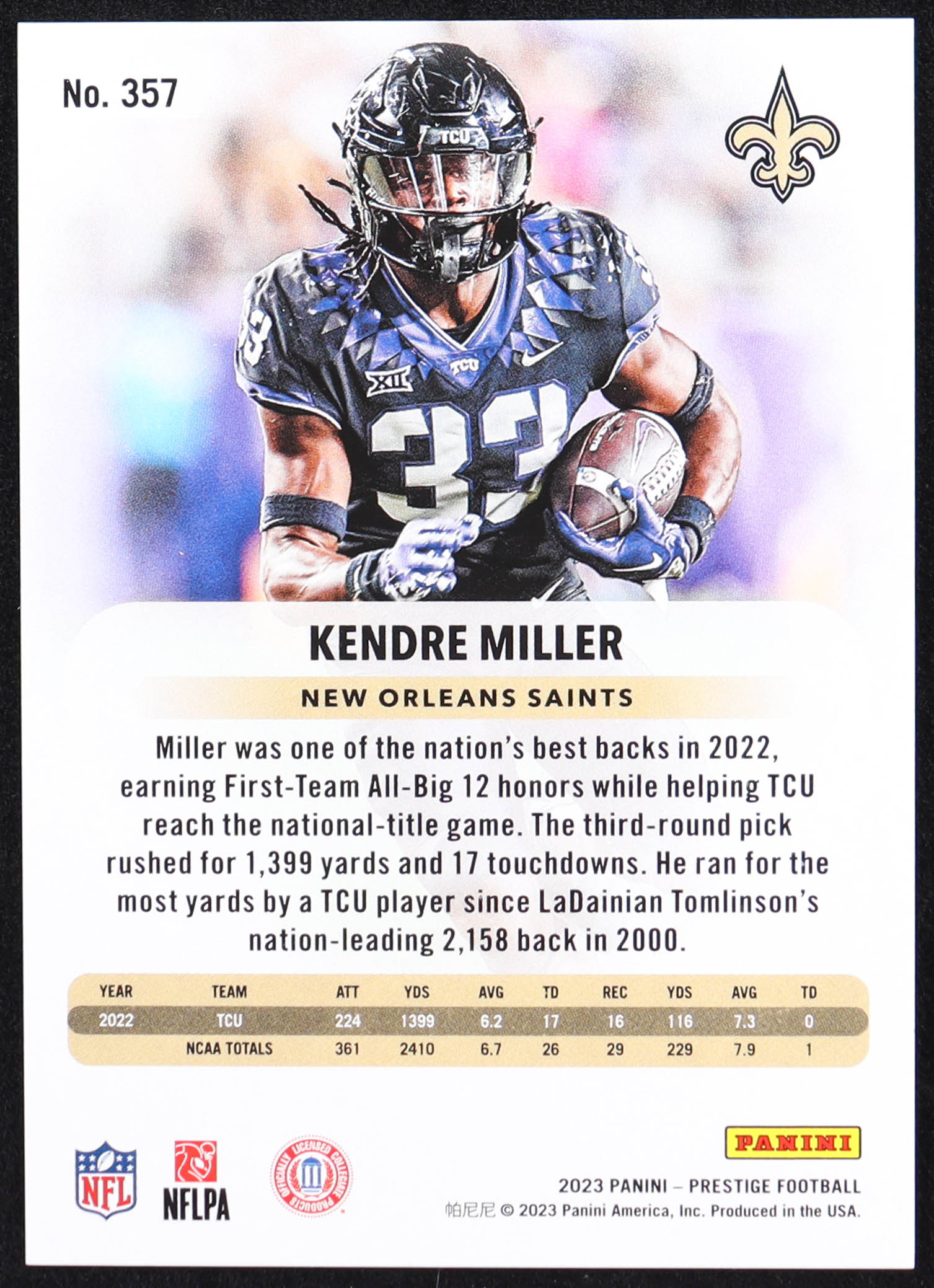 Kendre Miller 2023 Prestige Xtra Points Purple #357 RC #96/99