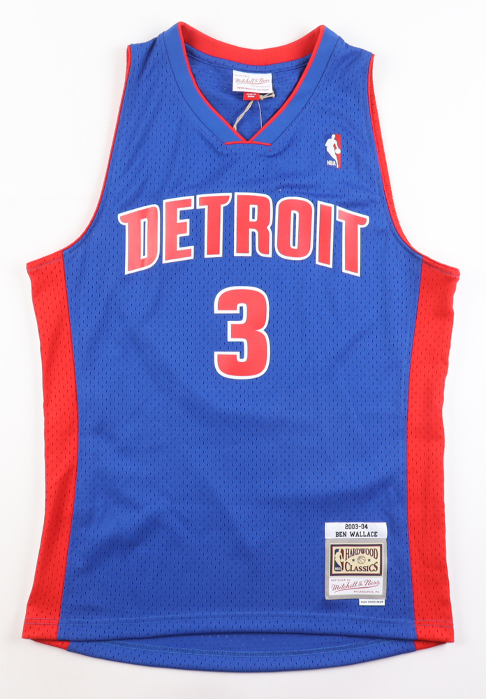 Mitchell & Ness jersey with everything is pressed on, size M. Hand-signed and inscribed by Ben Wallace (Detroit Pistons, HOF).