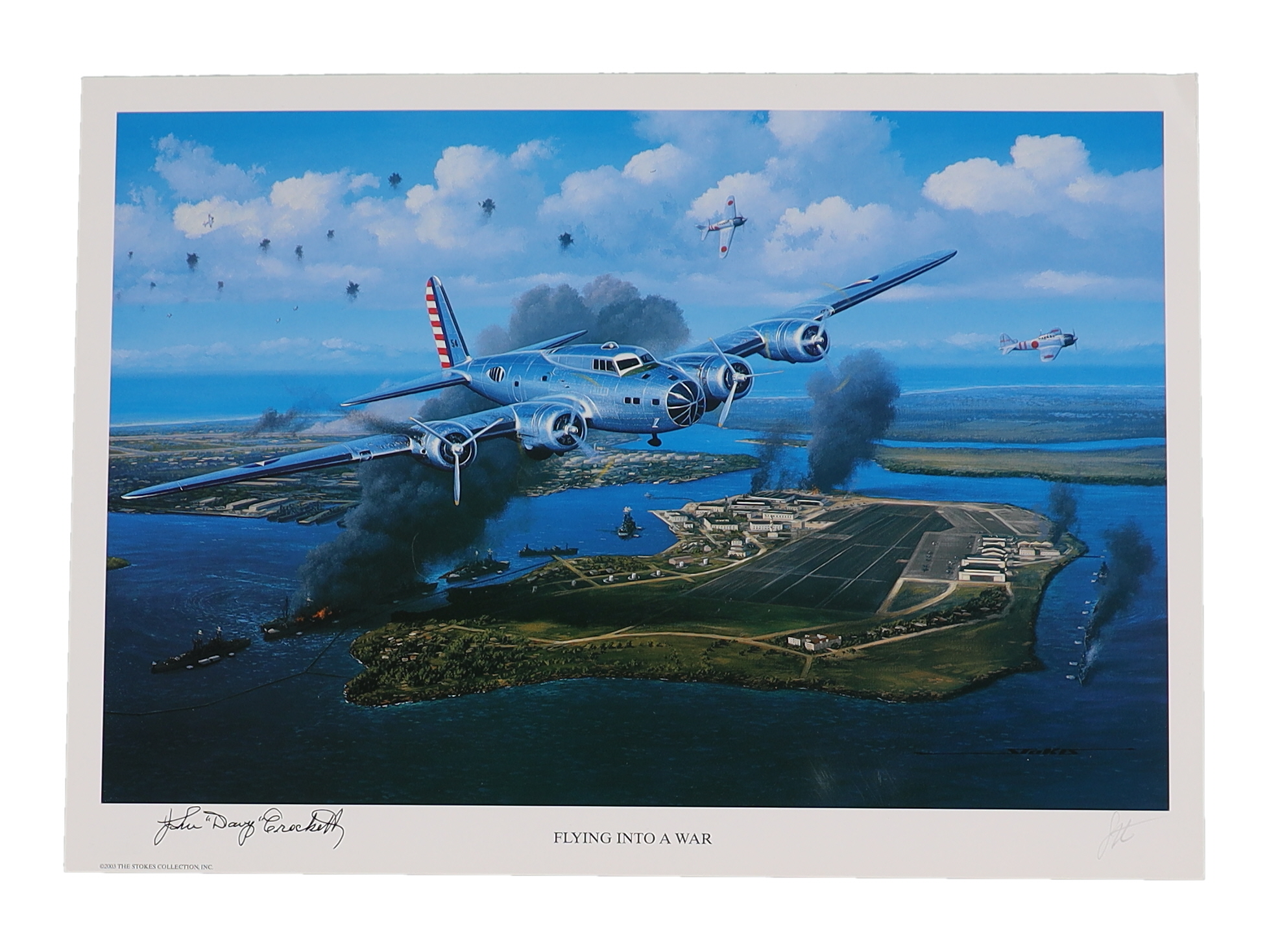 John "Davy" Crockett Signed Stan Stokes "Flying into a War" Lithograph (AIV)