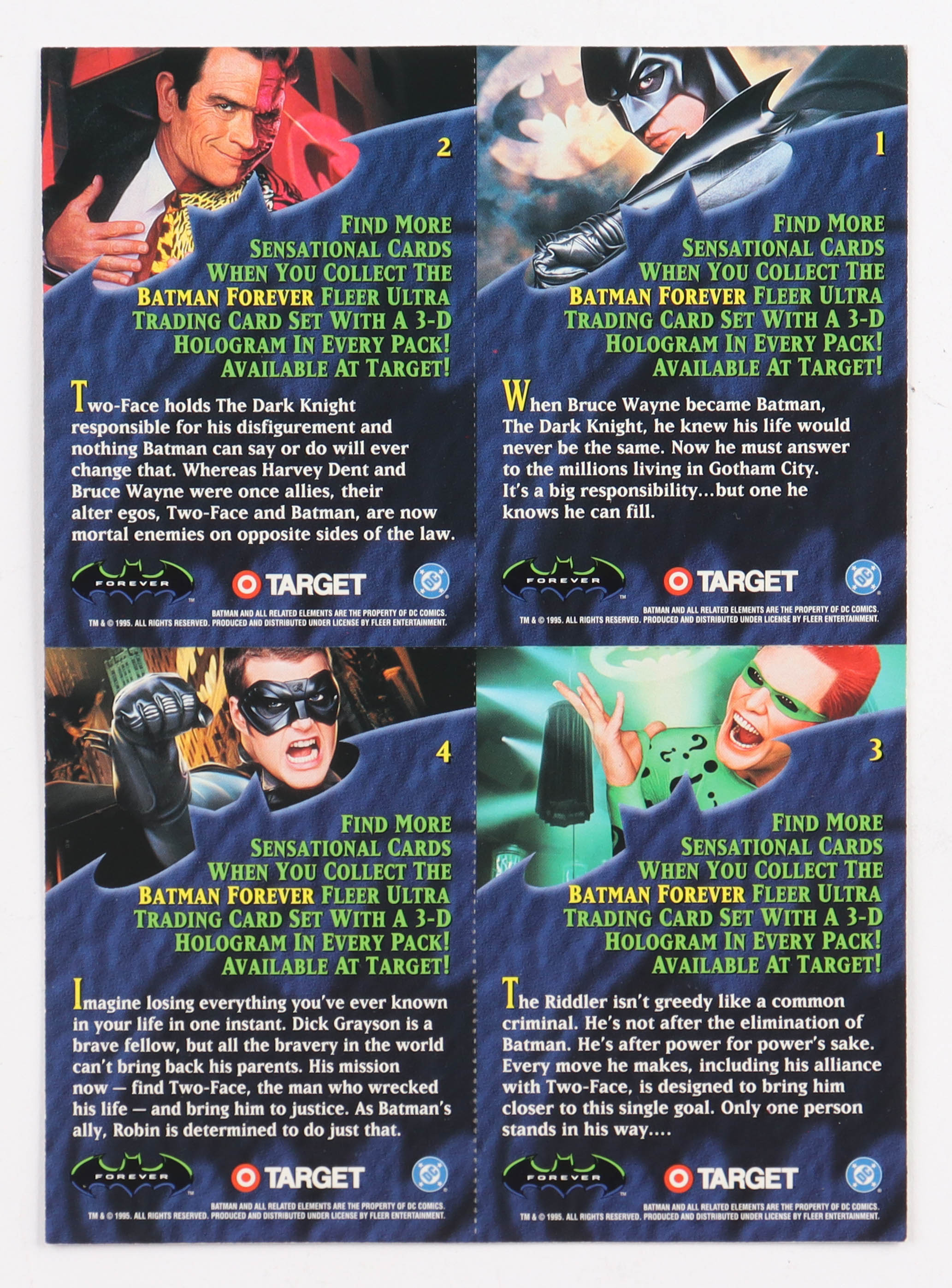 1995 Fleer Ultra Batman Forever (4) Card Uncut Sheet