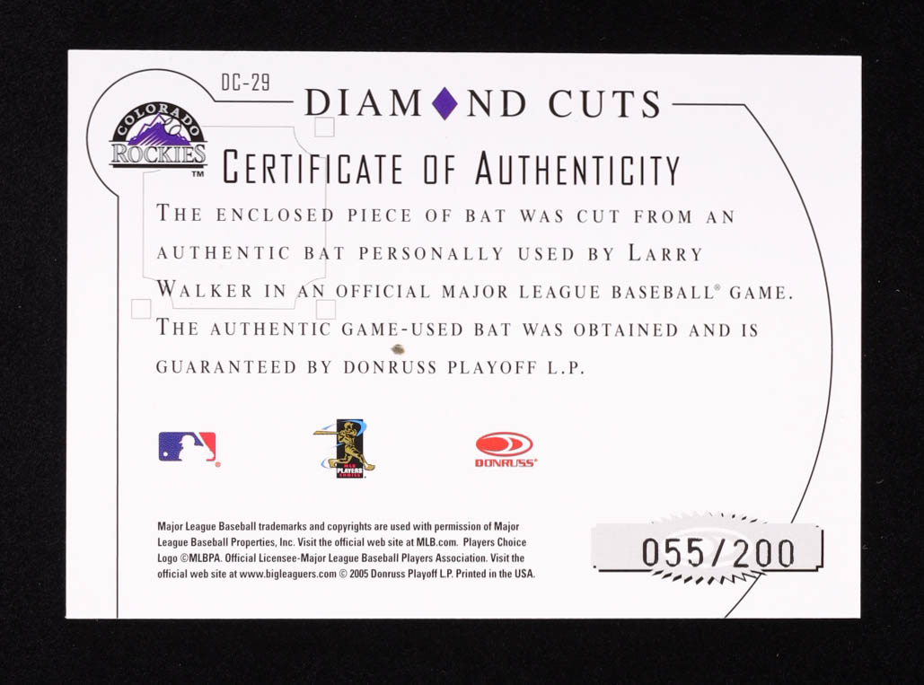 Larry Walker 2005 Diamond Kings Diamond Cuts Bat #DC29 #55/200