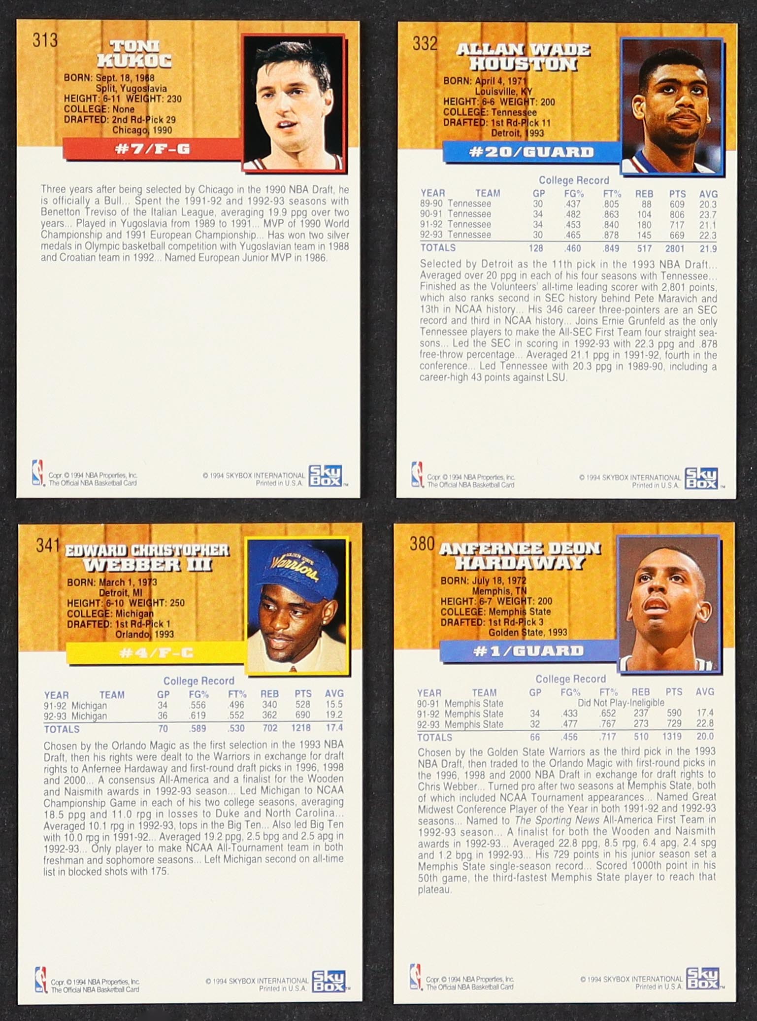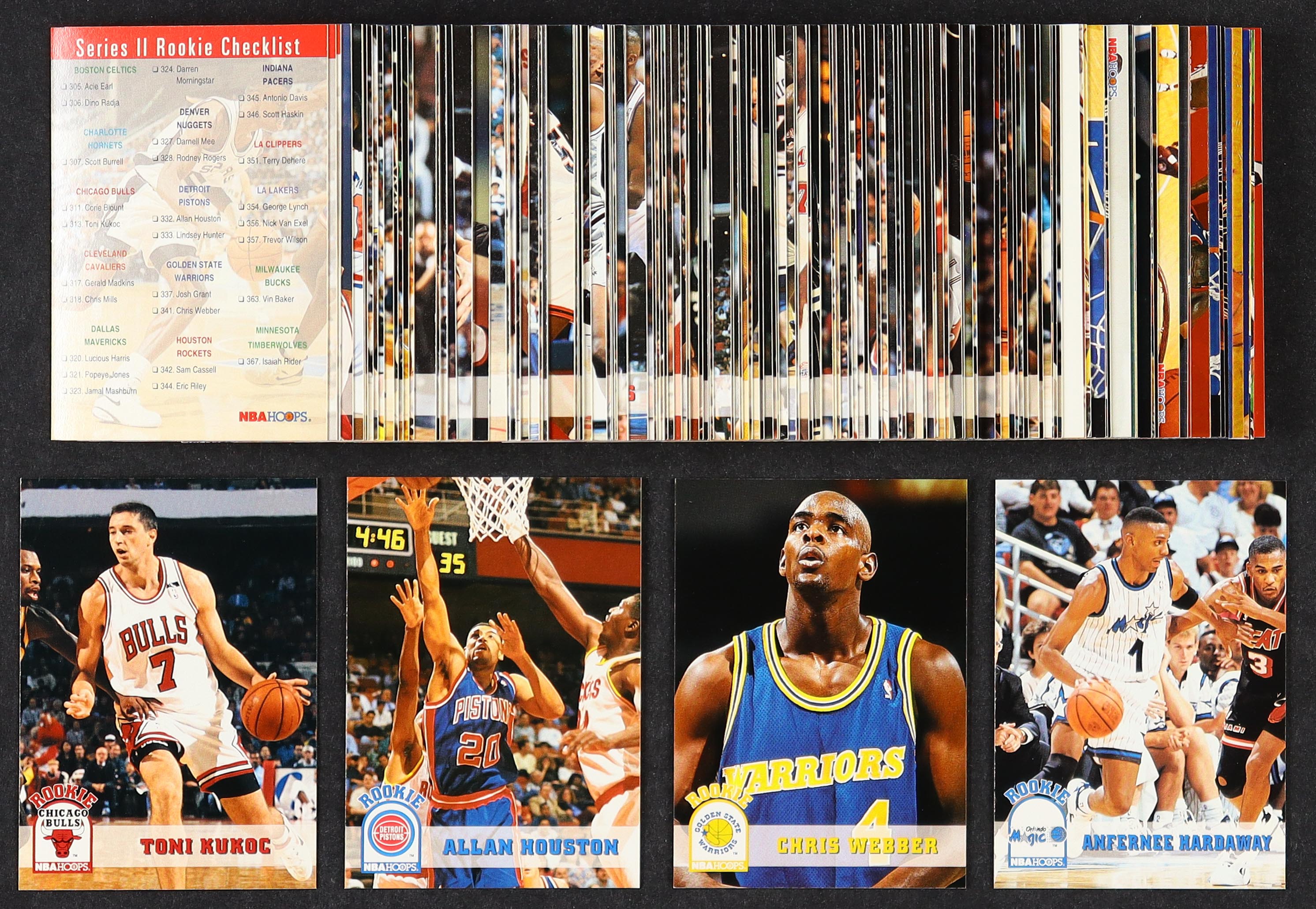 1993-94 NBA Hoops Basketball Cards Series 2 of (146) Cards With Allan Houston #332 RC, Toni Kukoc #313 RC, Chris Webber #341 RC, Anfernee Hardaway #380 RC