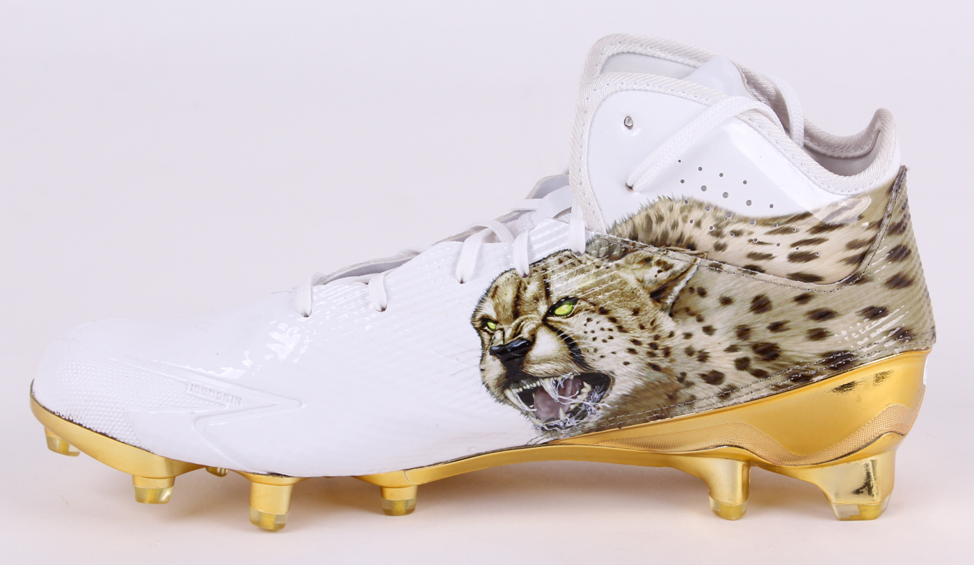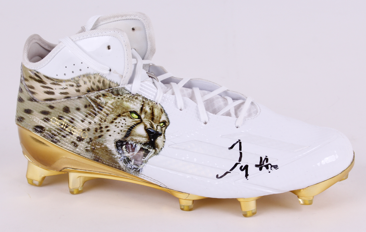 Adidas Adizero football cleat. Shoe size 8.5. Hand-signed in black felt-tip pen by Tyreek Hill (Chiefs).