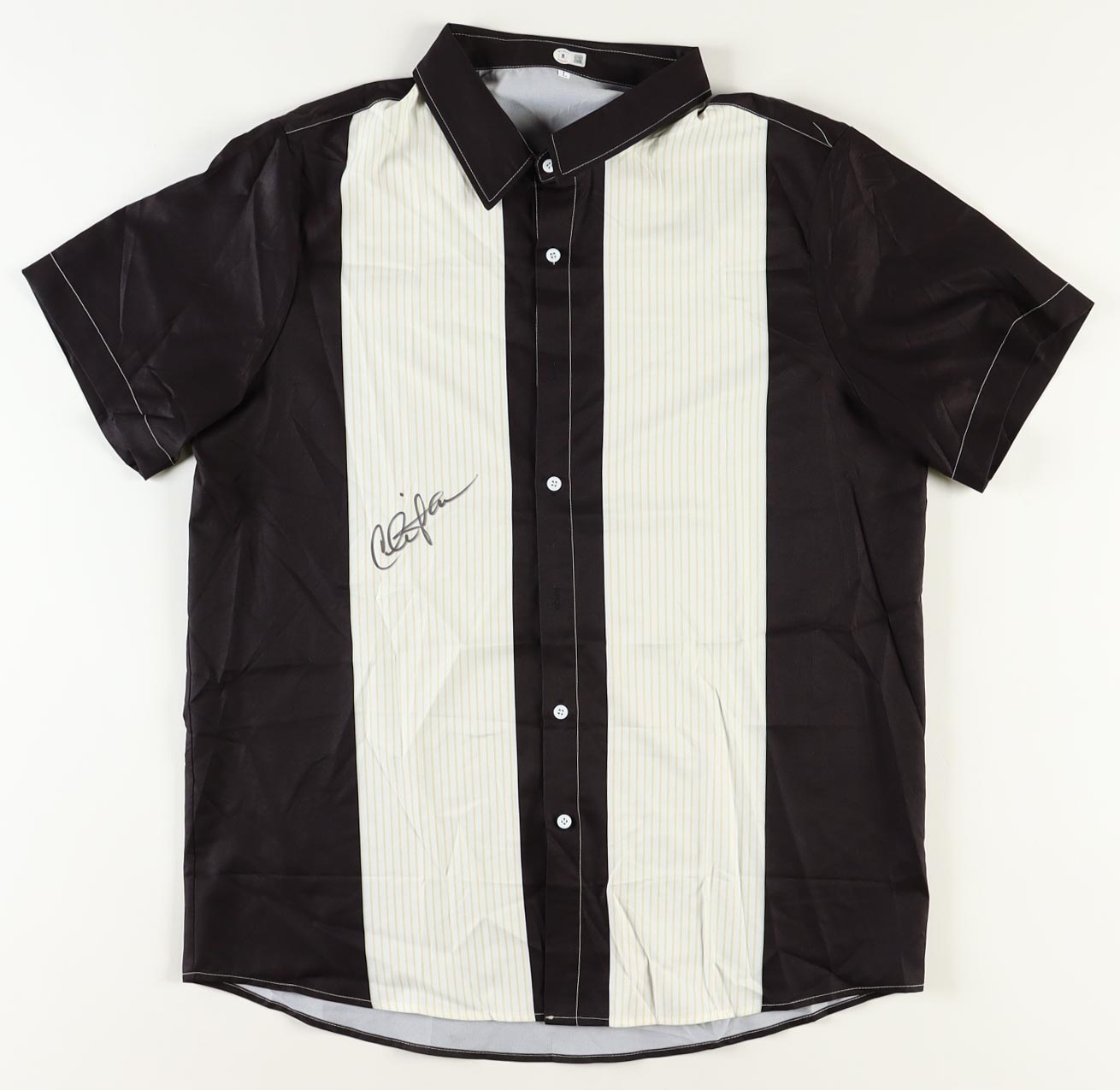 Custom shirt is size XL. Hand-signed by Charlie Sheen (Charlie Harper).