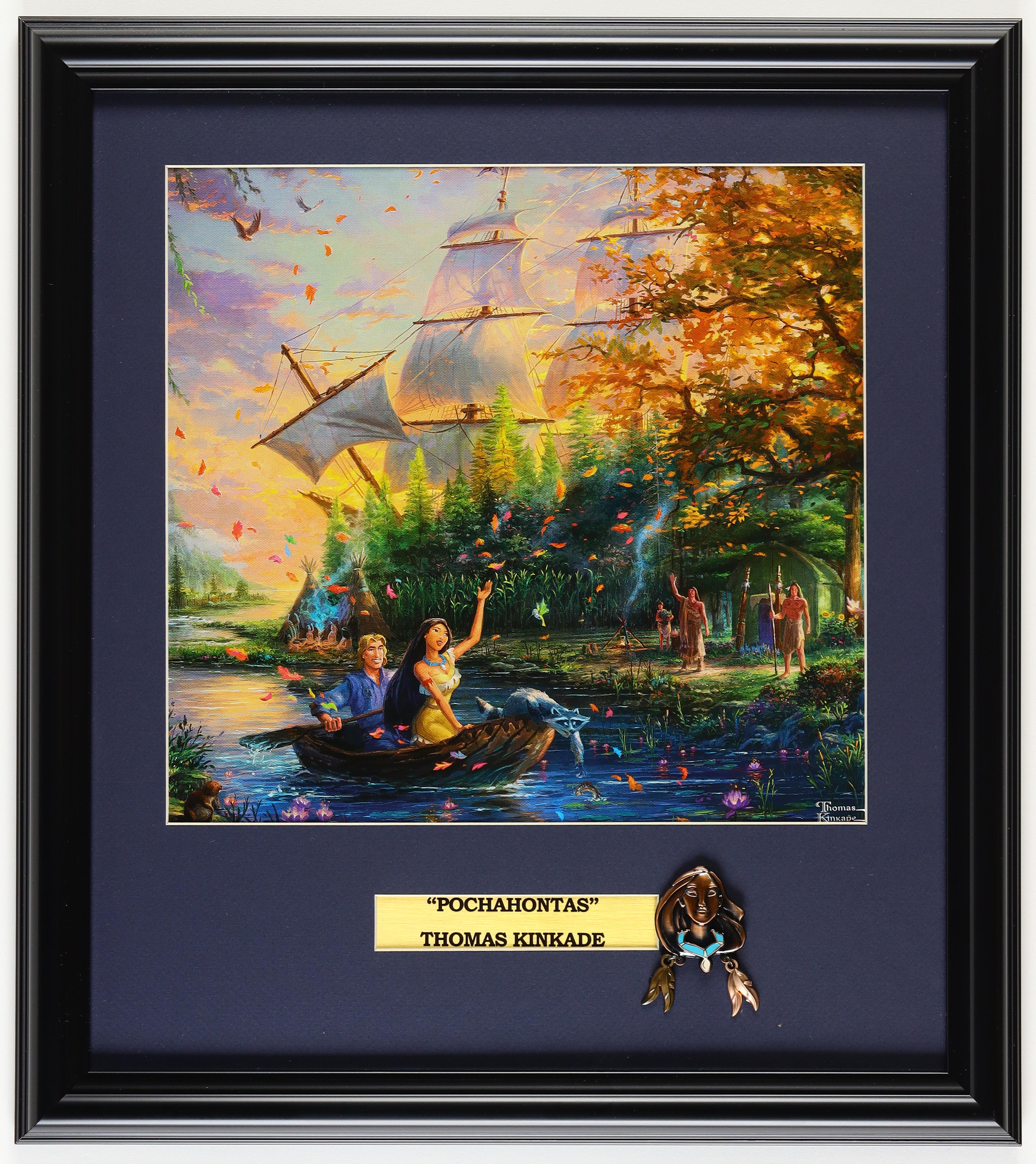 Thomas Kinkade "Pochahontas" Custom Framed Print Display With Pochahontas Disney Hanging Movie Pin