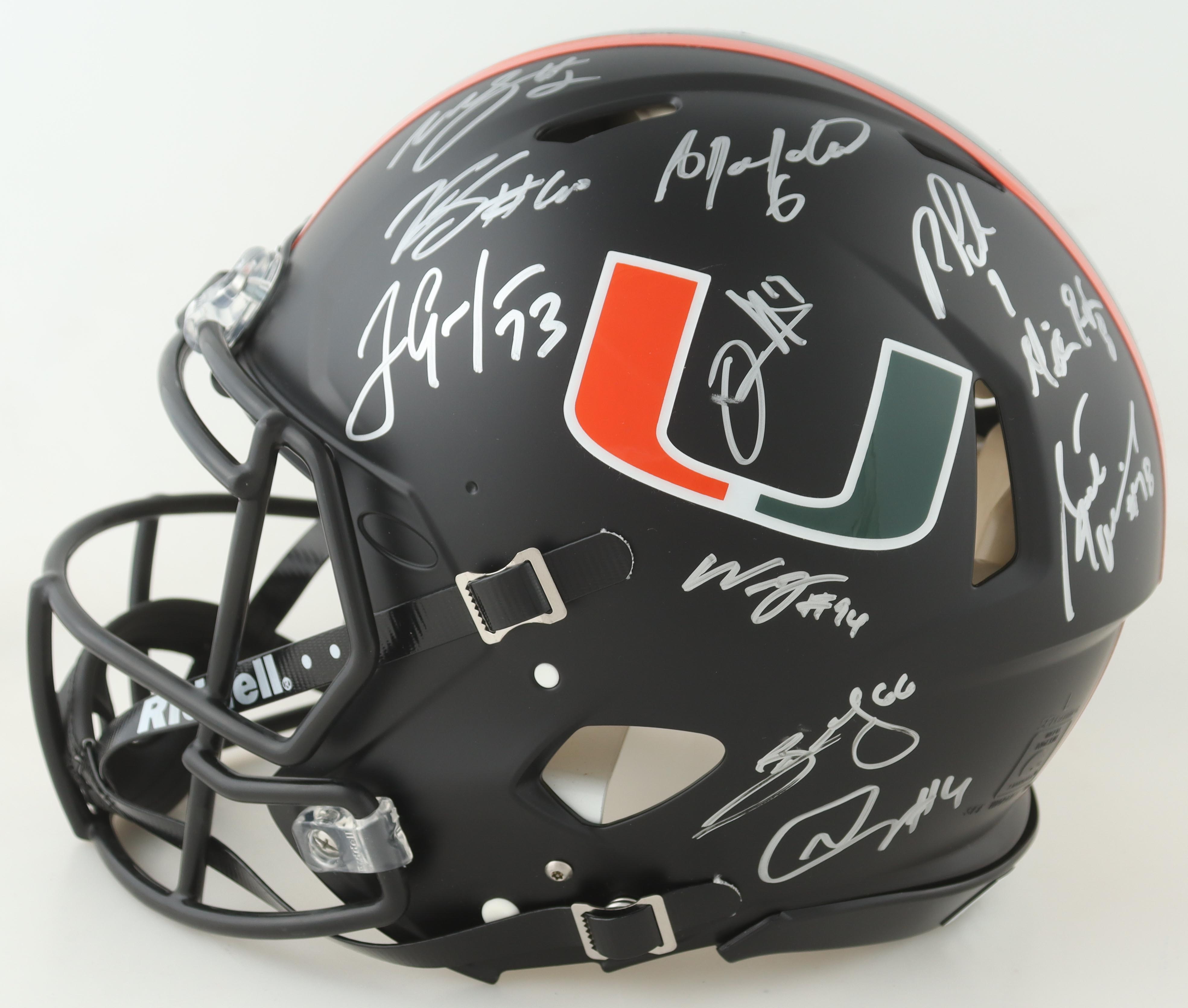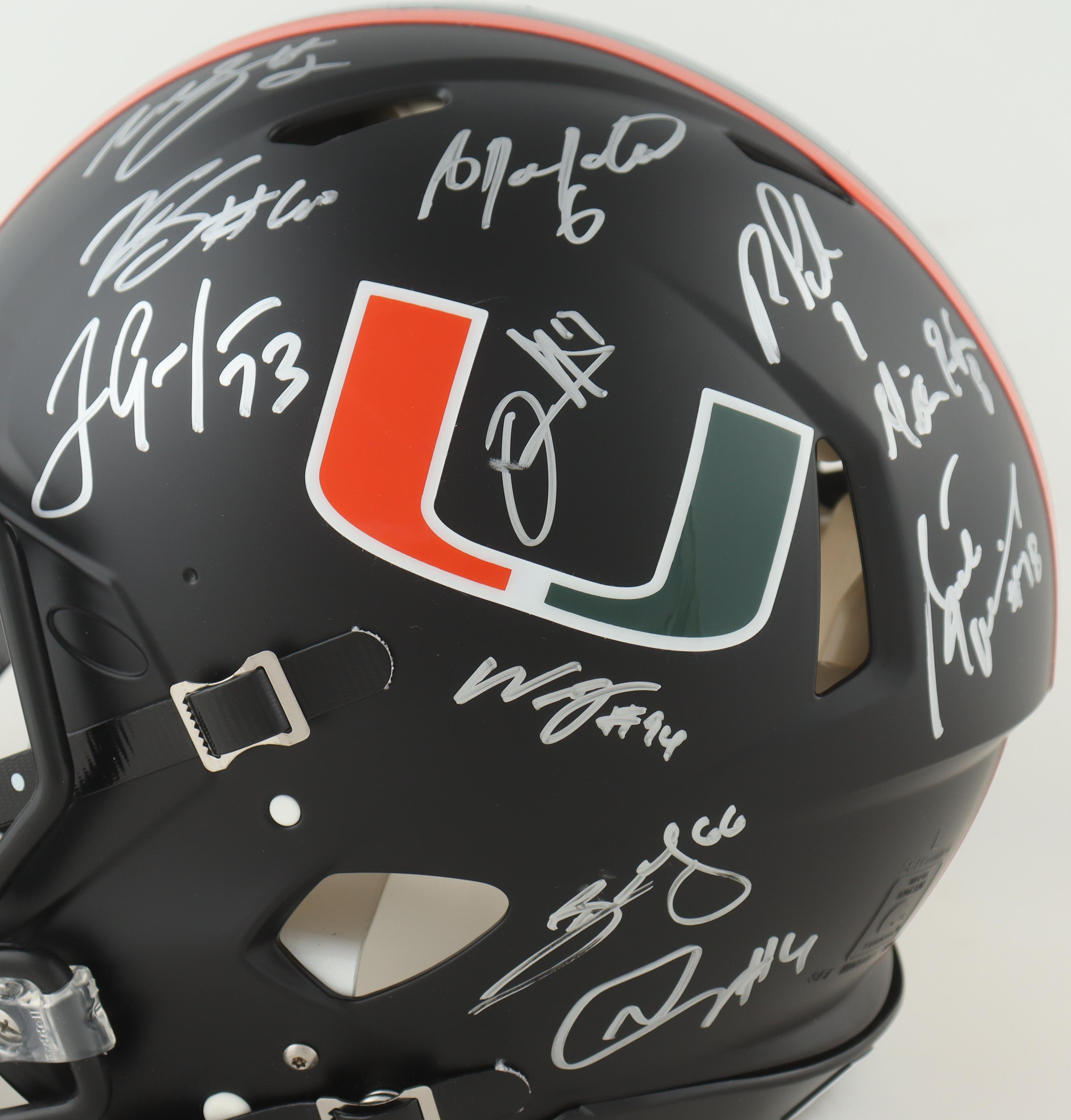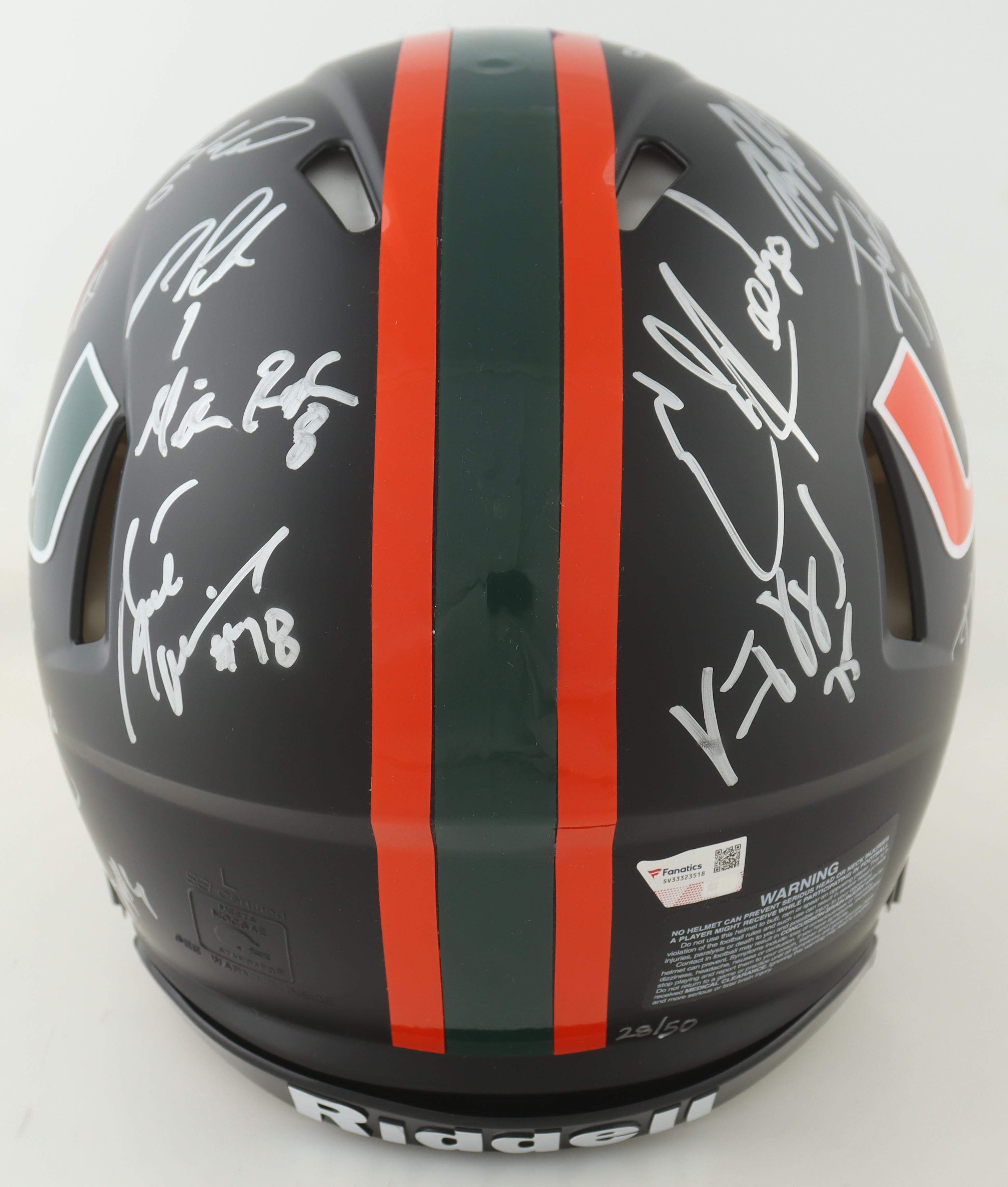 2001 Miami Hurricanes LE Full-Size Authentic On-Field Matte Black Helmet Team-Signed by (20) with Ed Reed, Frank Gore, Clinton Portis & Vince Wilfork (Fanatics)