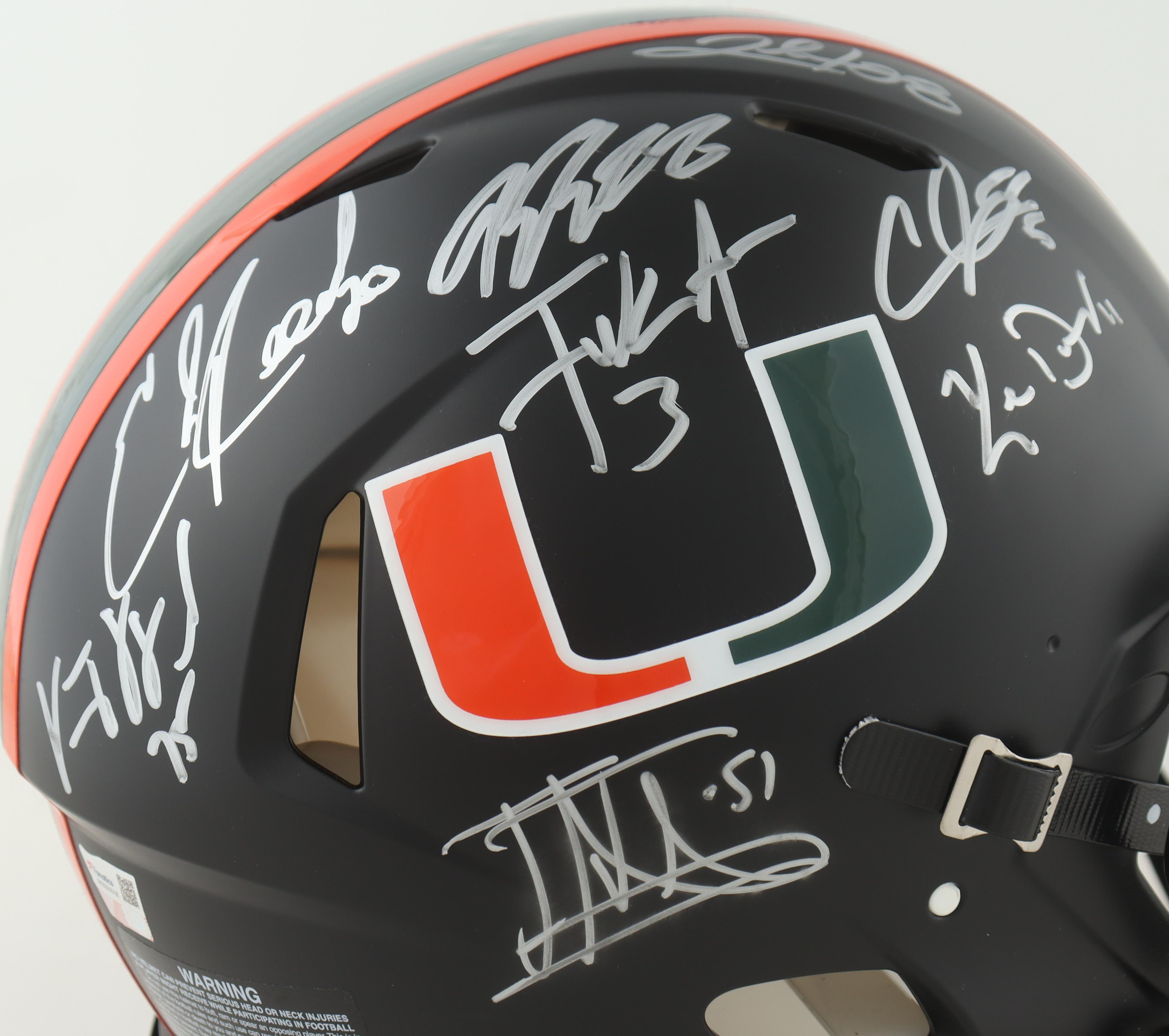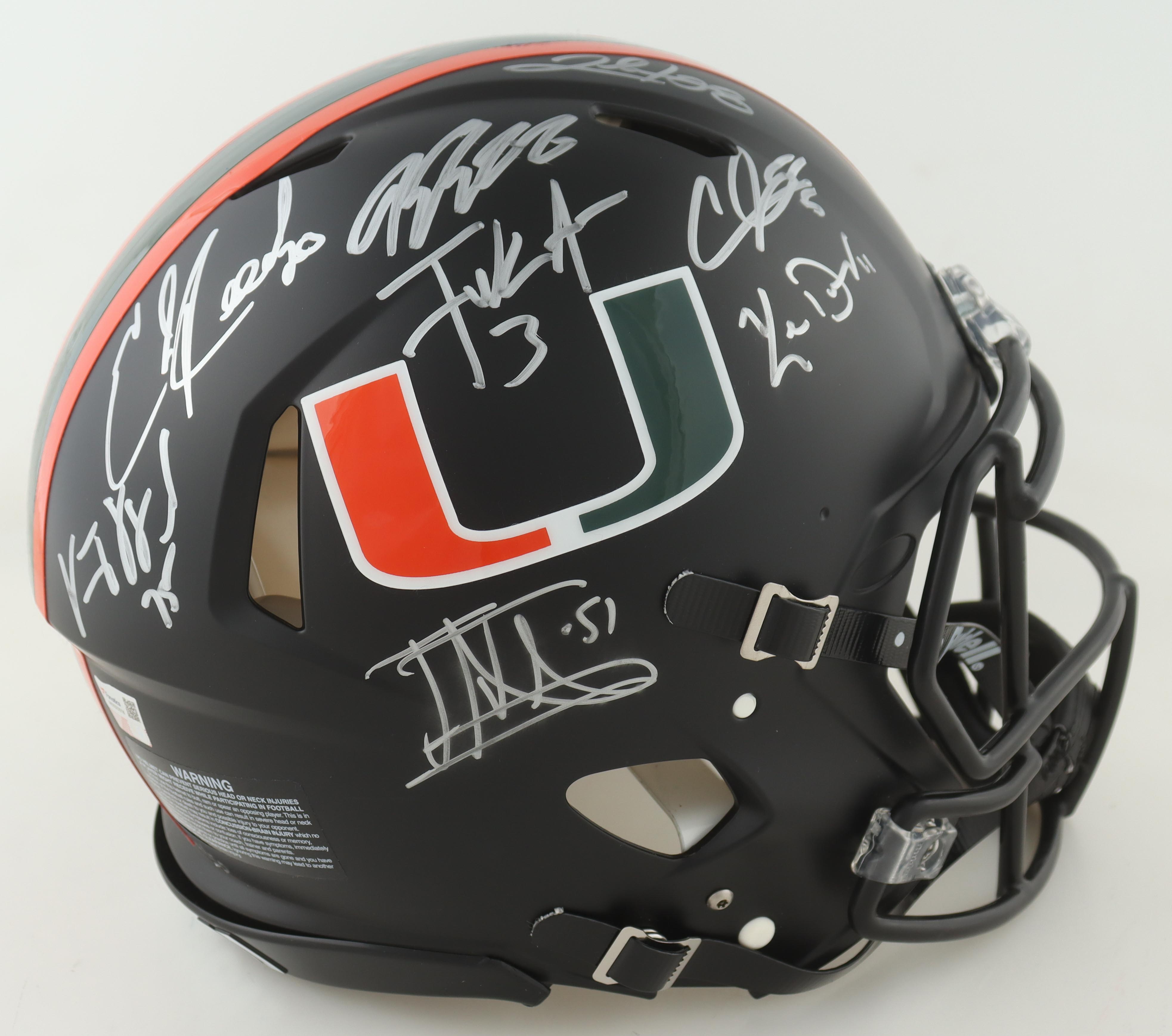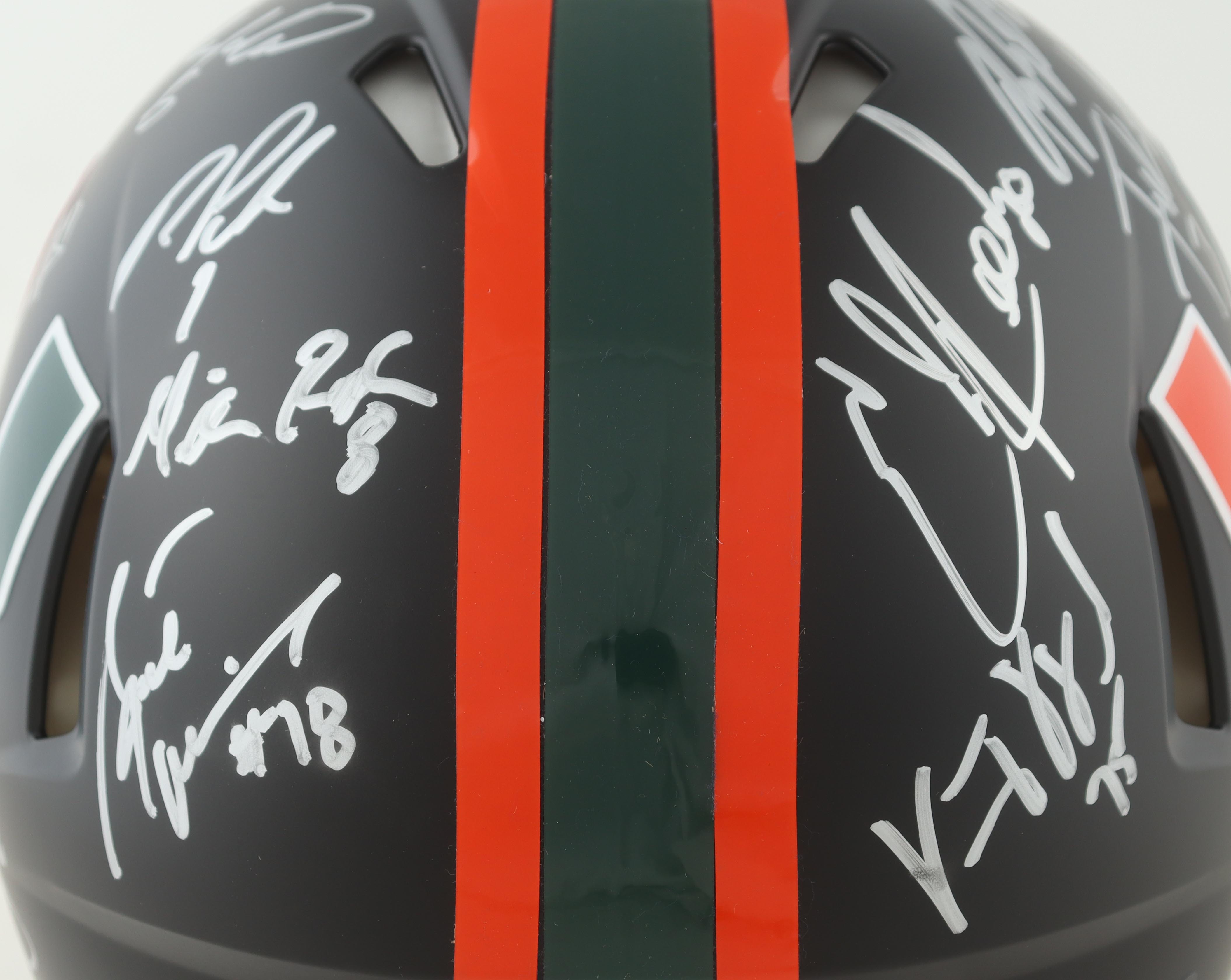 2001 Miami Hurricanes LE Full-Size Authentic On-Field Matte Black Helmet Team-Signed by (20) with Ed Reed, Frank Gore, Clinton Portis & Vince Wilfork (Fanatics)