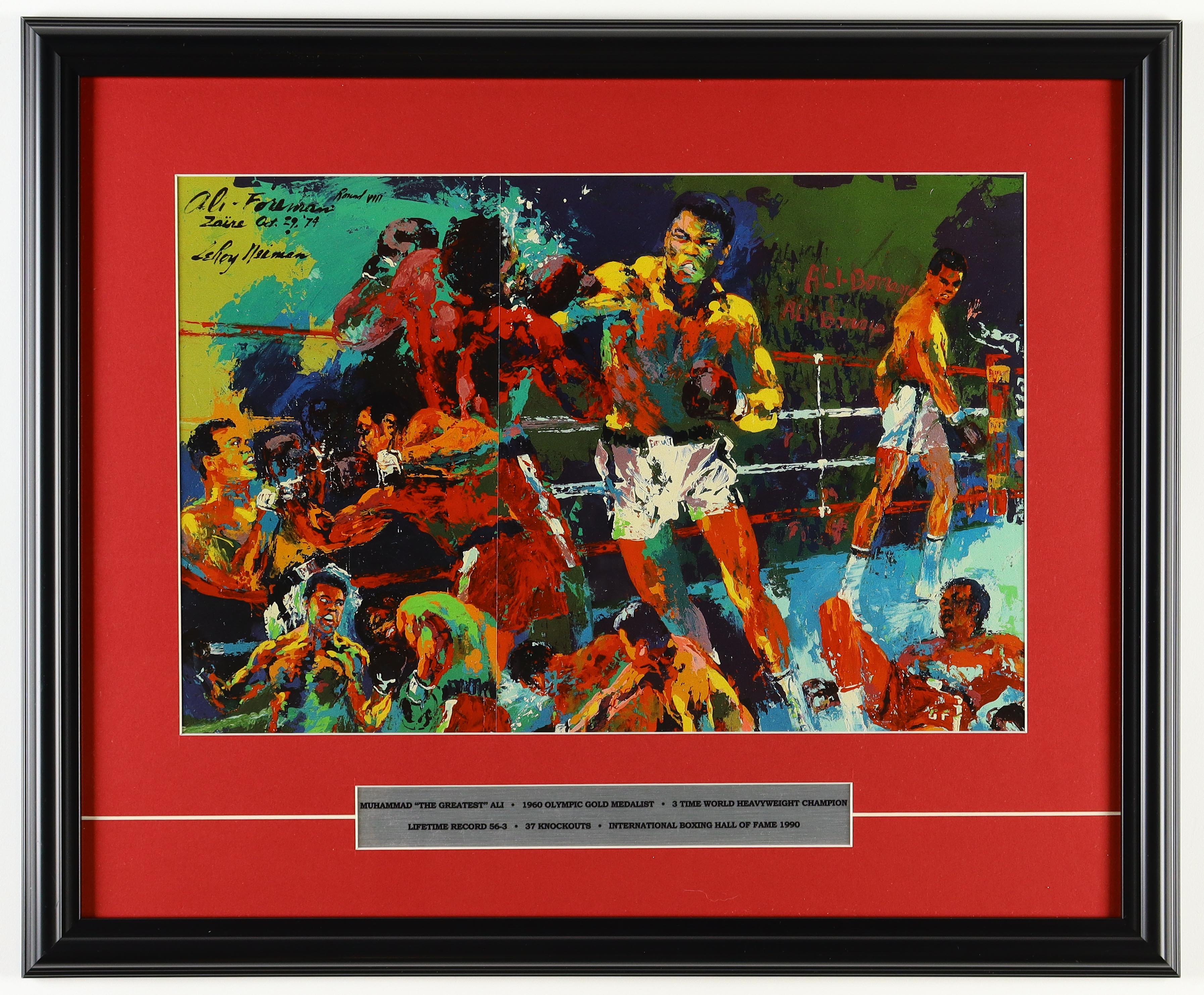 Custom frame measures approximately 19" x 23" in size and features an art print from LeRoy Neiman (D. 2012) featuring Muhammad Ali (D. 2016, HOF). Please note, the display is unsigned.