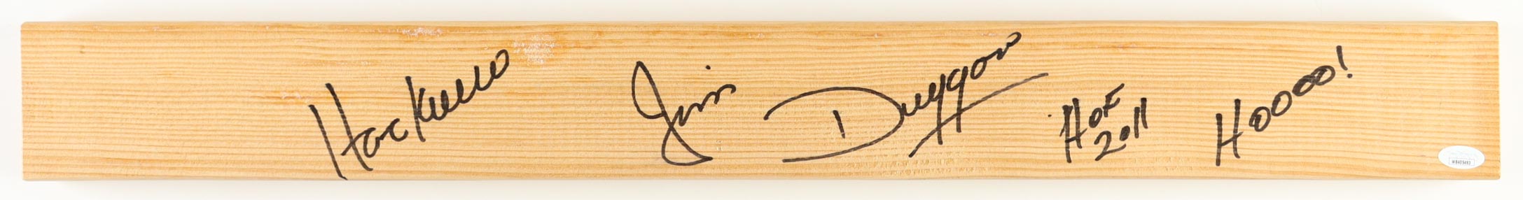 "Hacksaw" Jim Duggan Signed Wood Plank Inscribed "HOF 2011" & "Hooo!" (JSA)