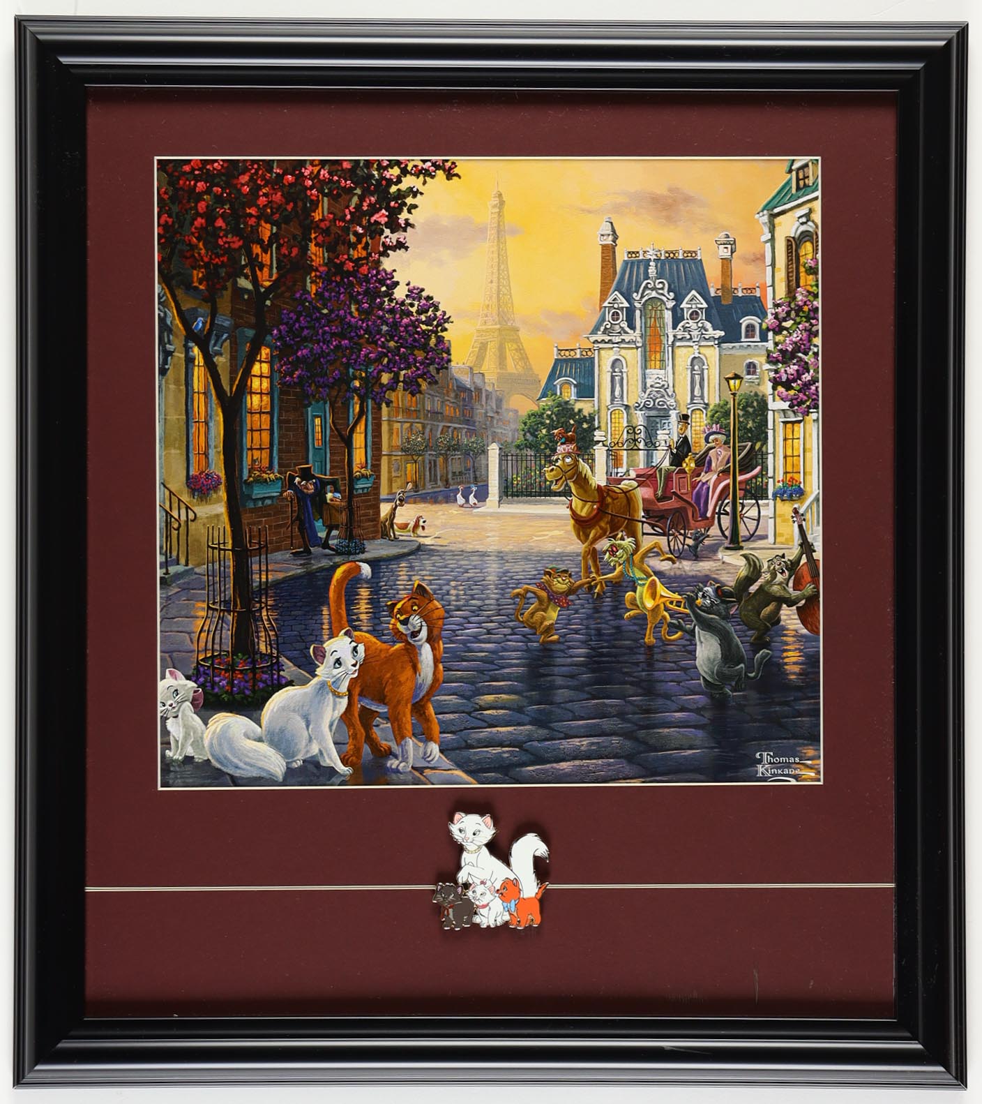 Thomas Kinkade "The Aristocats" Custom Framed Print Display with Duchess & Kittens XL Character Pin