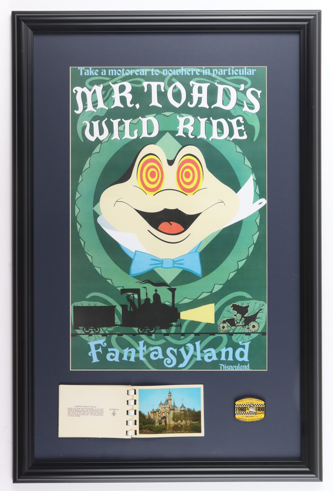 Disneyland "Mr. Toad's Wild Ride" Fantasyland Custom Framed Poster Display with Disneyland Booklet & Official Ride Pin