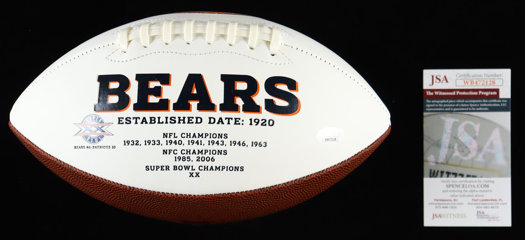 Chicago Bears Logo Football. Hand-signed by Mike Singletary (HOF).