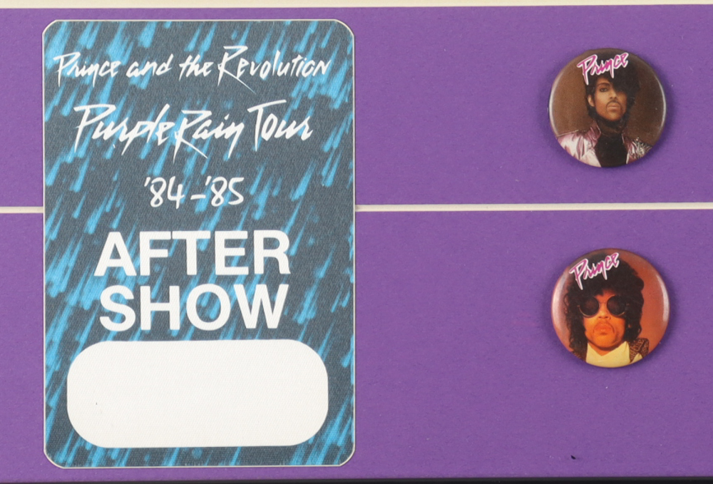 Prince & The Revolution Purple Rain Tour Custom Framed Poster Display with Original Vintage After Show Pass & (2) Concert Pins