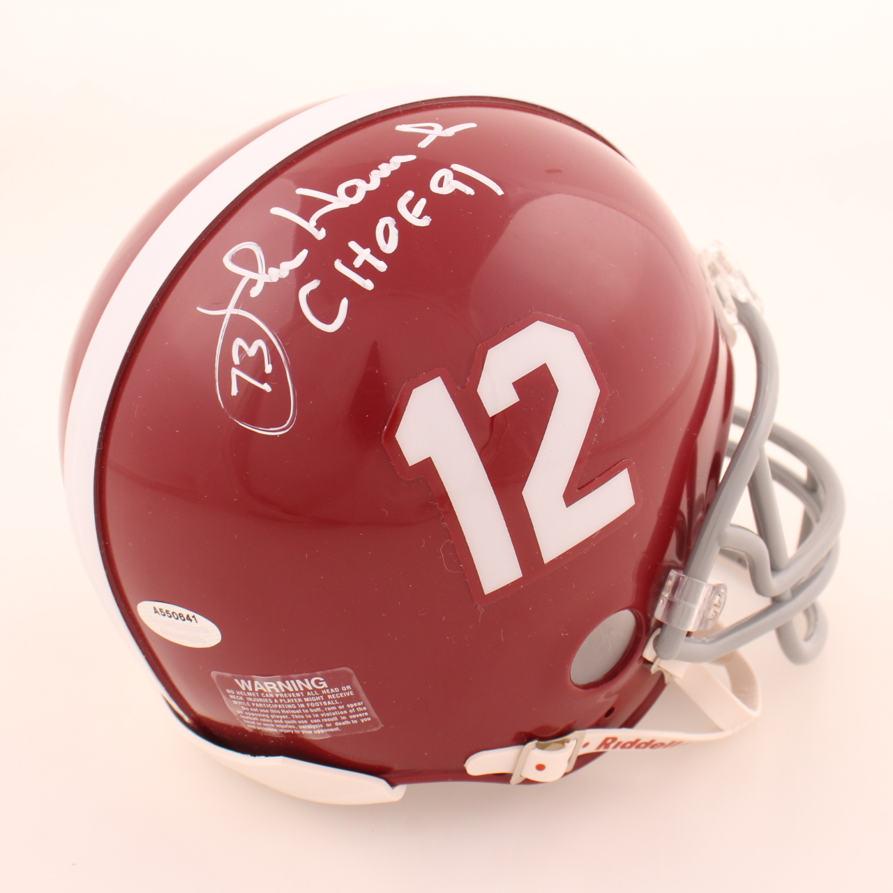 Riddell Alabama Crimson Tide mini helmet. Hand-signed and inscribed by John Hannah (HOF).