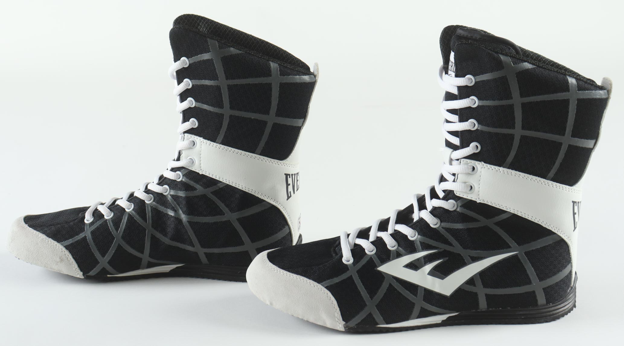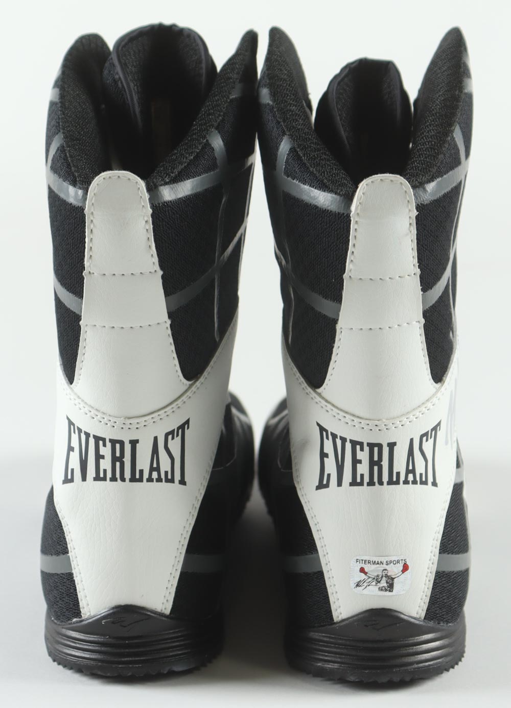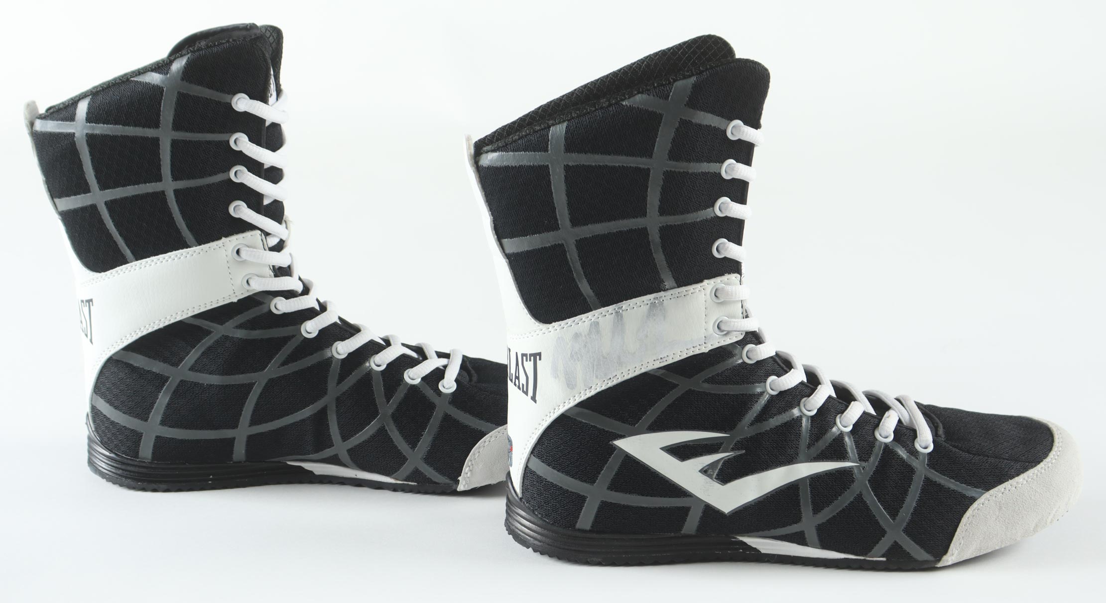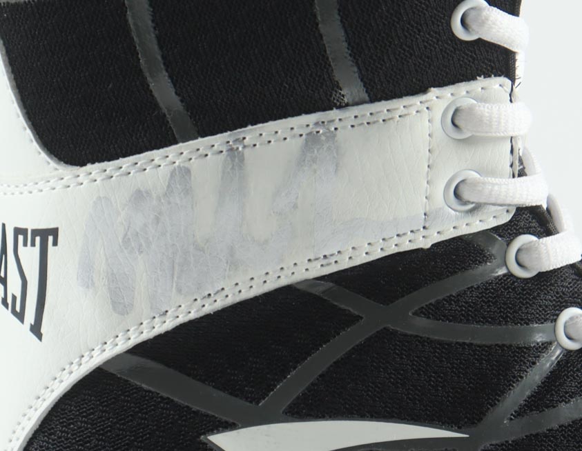 Pair of (2) Everlast professional boxing boots. The right boot has been hand-signed by Mike Tyson (HOF). Please note, the signature is smudged.
