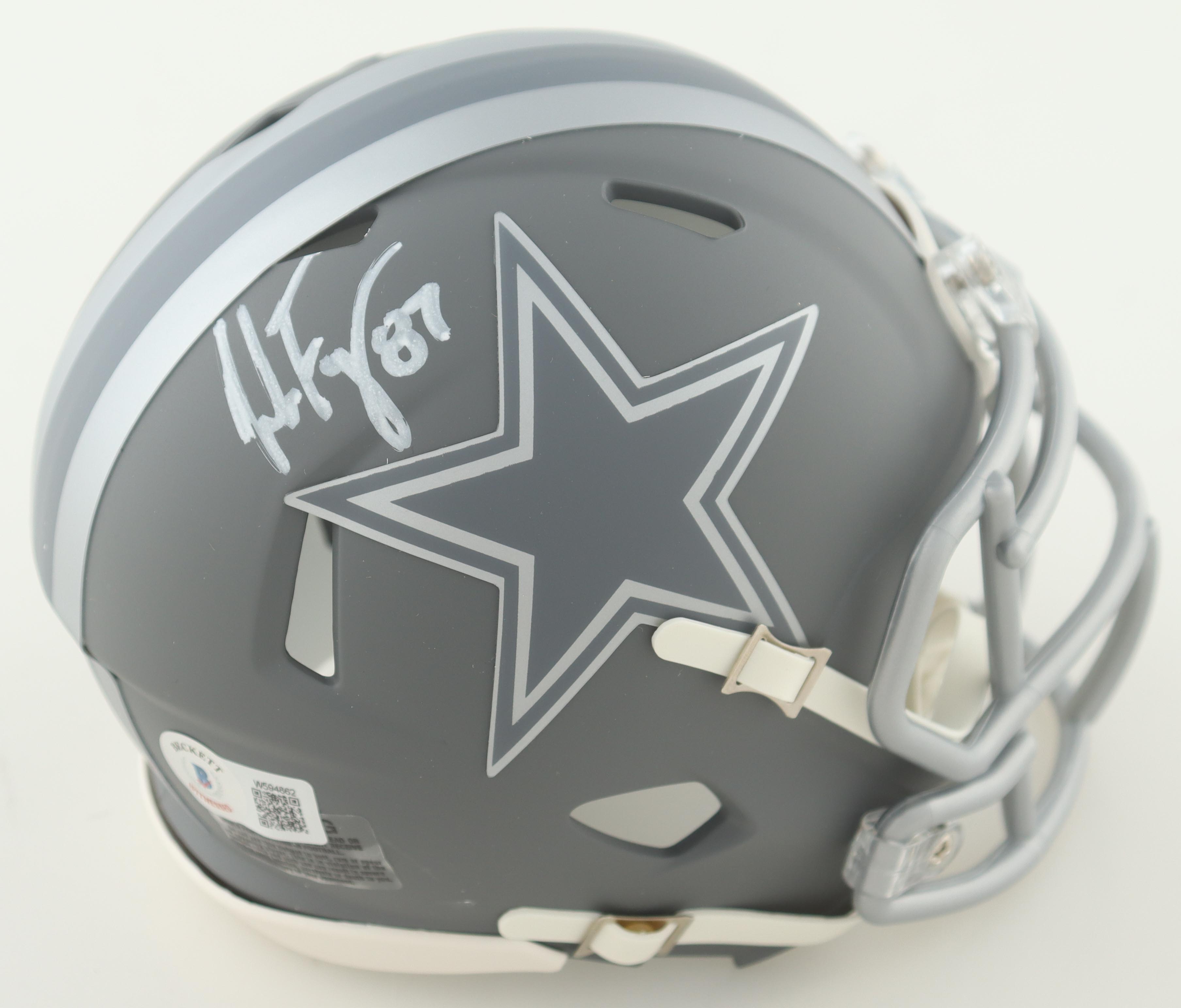 Riddell Dallas Cowboys Slate Alternate Speed mini helmet. Hand-signed by Jake Ferguson.