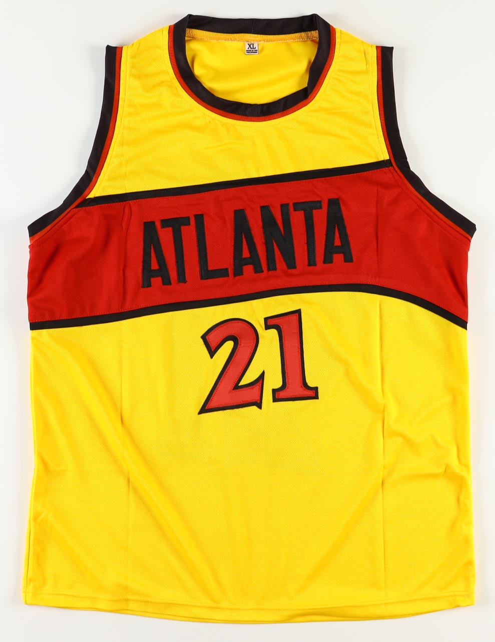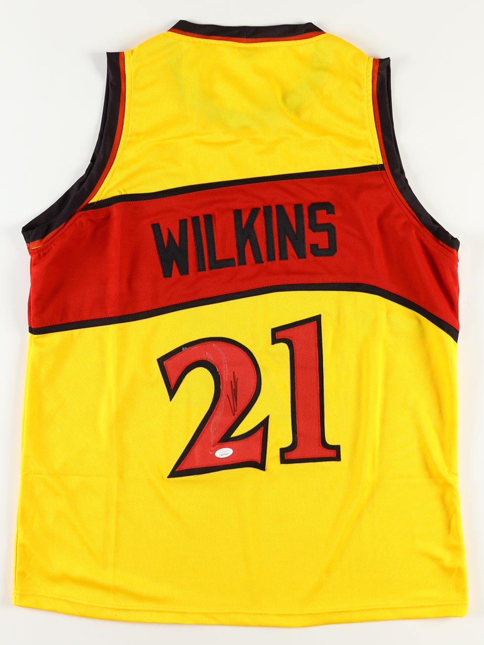 Custom jersey with everything sewn on, size XL. Hand-signed by Dominique Wilkins (HOF). Please note, there is residue on the reverse jersey number. See photos for more details.