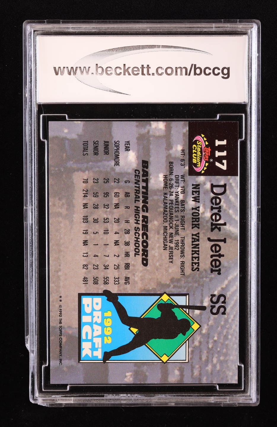 Derek Jeter 1993 Stadium Club Murphy #117 RC (BCCG 9)