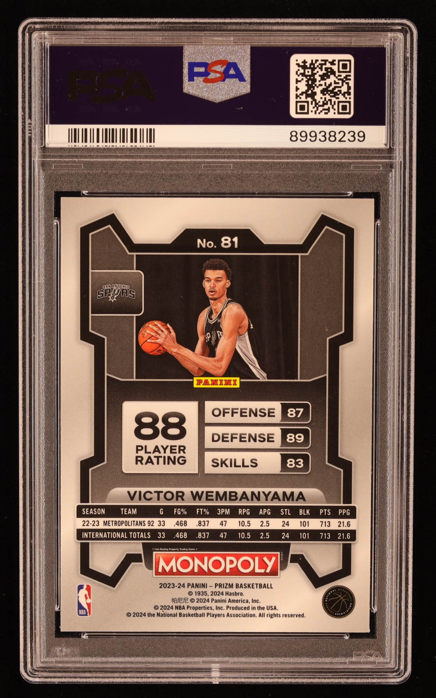 Victor Wembanyama 2023-24 Panini Prizm Monopoly #81 RC (PSA 10)