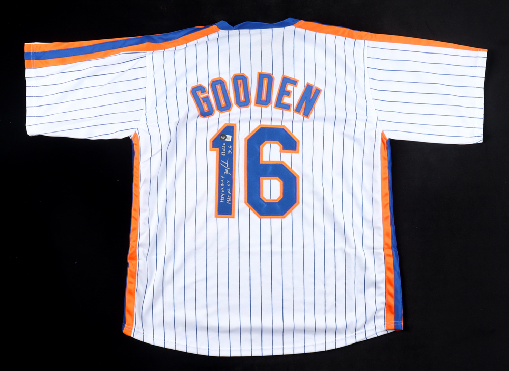 Custom jersey. Everything is sewn on, size XL. Hand-signed and inscribed by Dwight Gooden.