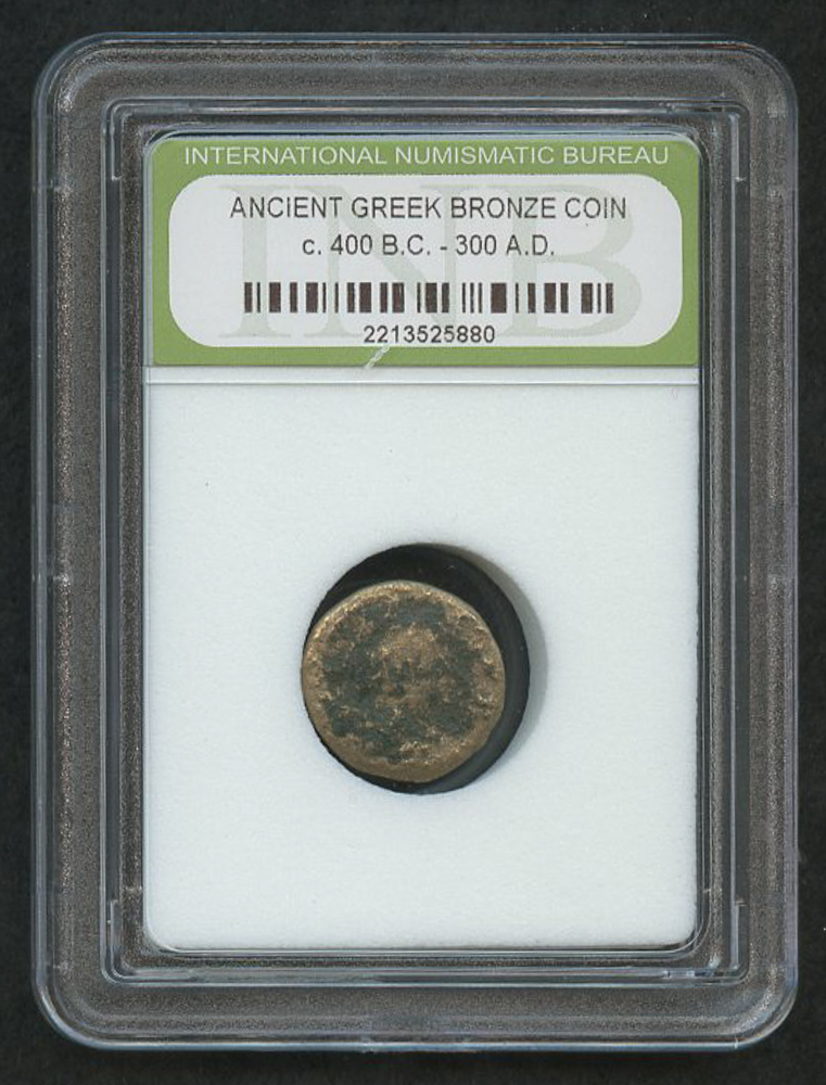 Ancient Greek Bronze from 400 BC - 300 AD Coin. The coin has been authenticated and encapsulated by the International Numismatic Bureau (INB). Please see the scans below for details on the condition of the coin.