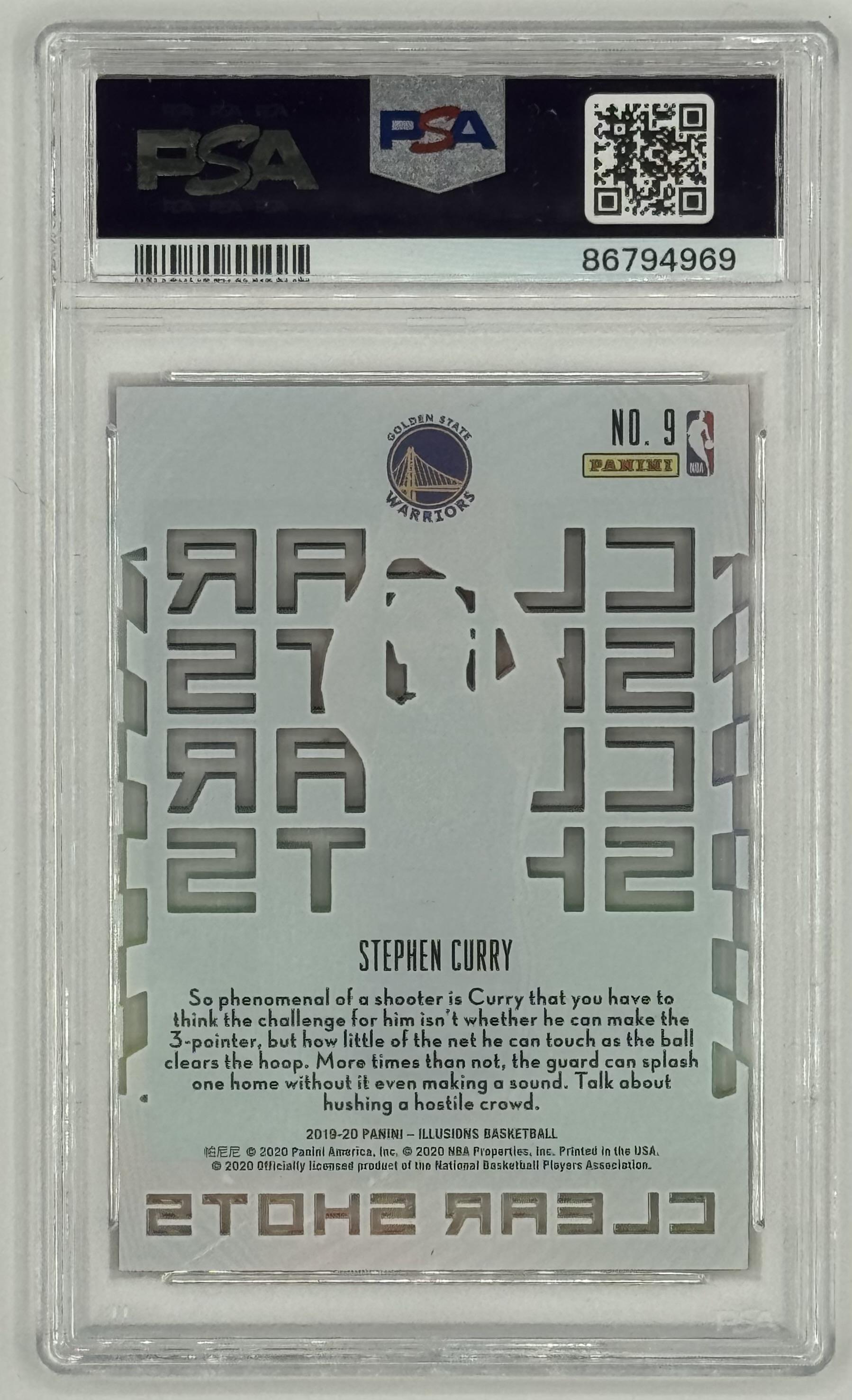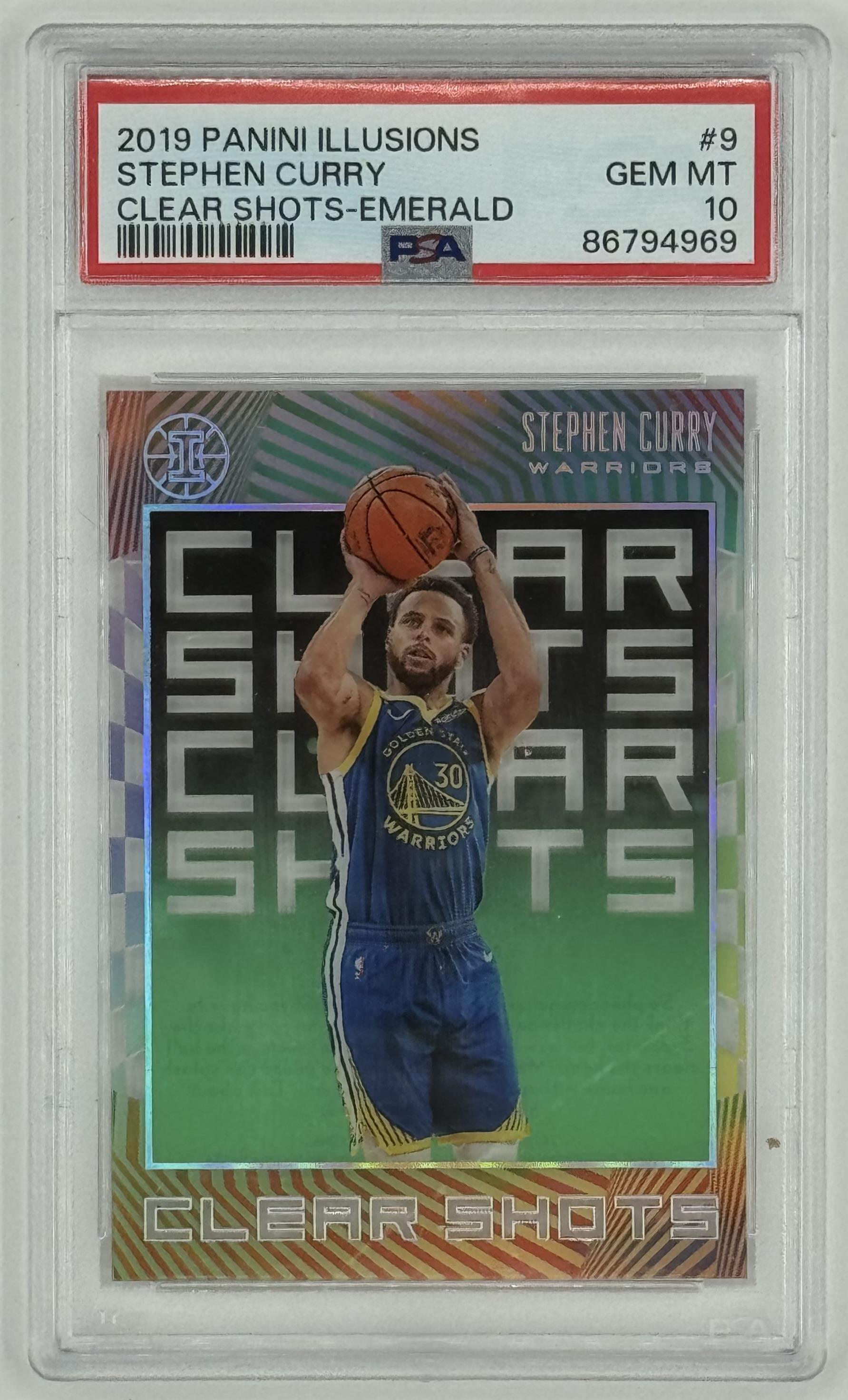 Stephen Curry 2019-20 Panini Illusions Clear Shots Emerald #9 (PSA 10)