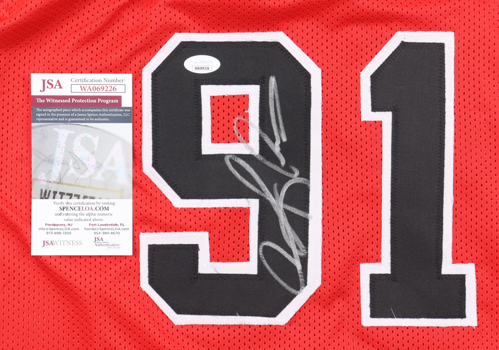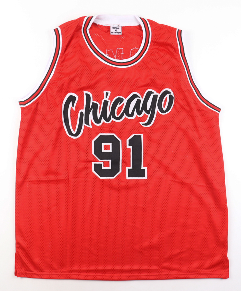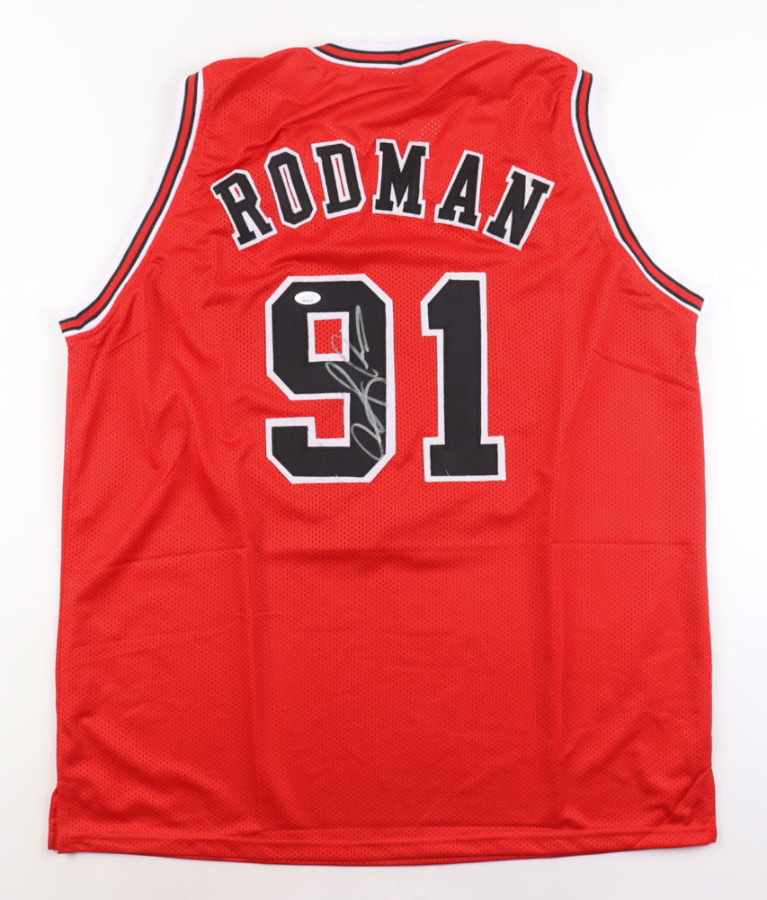 Custom jersey with everything sewn on, size XL. Has been hand-signed by Dennis Rodman (HOF).