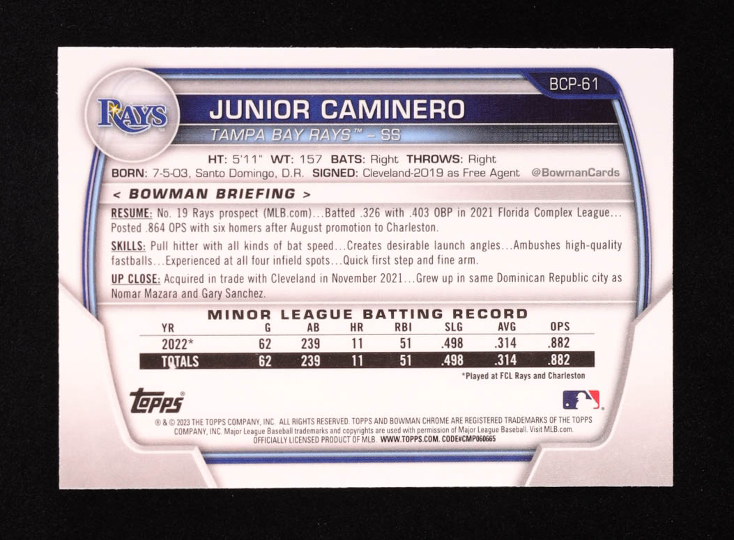 Junior Caminero 2023 Bowman Chrome Prospects #BCP61 RC