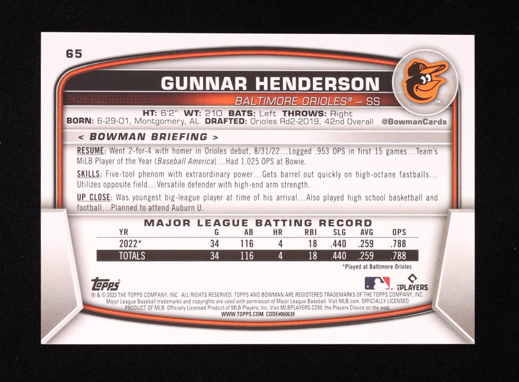 Gunnar Henderson 2023 Bowman #65 RC