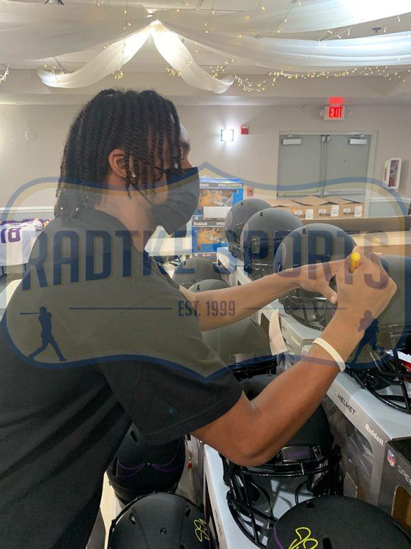 Riddell Minnesota Vikings full-size authentic on-field custom Eclipse Alternate Speed helmet. Hand-signed by Justin Jefferson.
