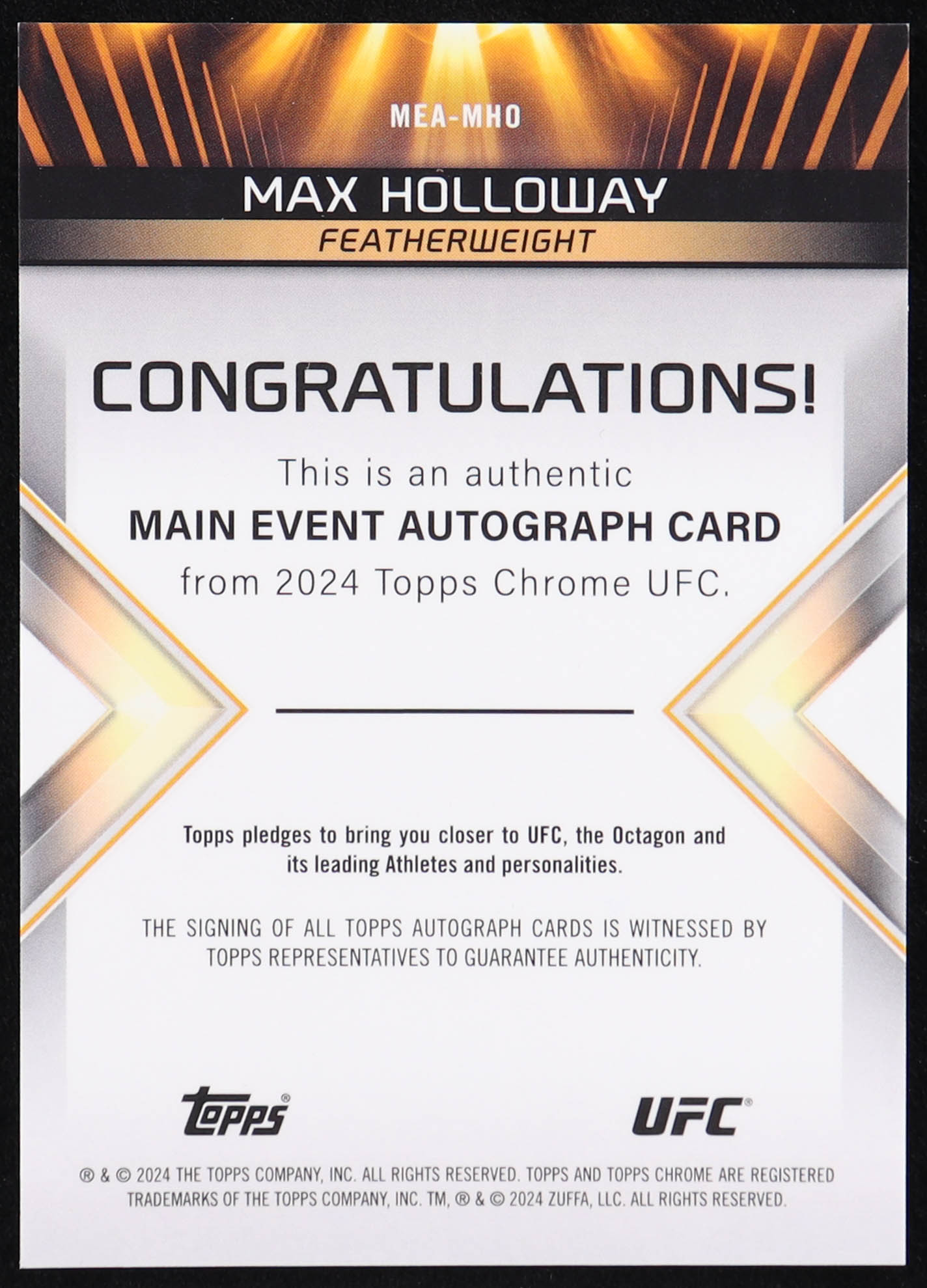 Max Holloway 2024 Topps Chrome UFC Main Event Autographs #MEAMHO