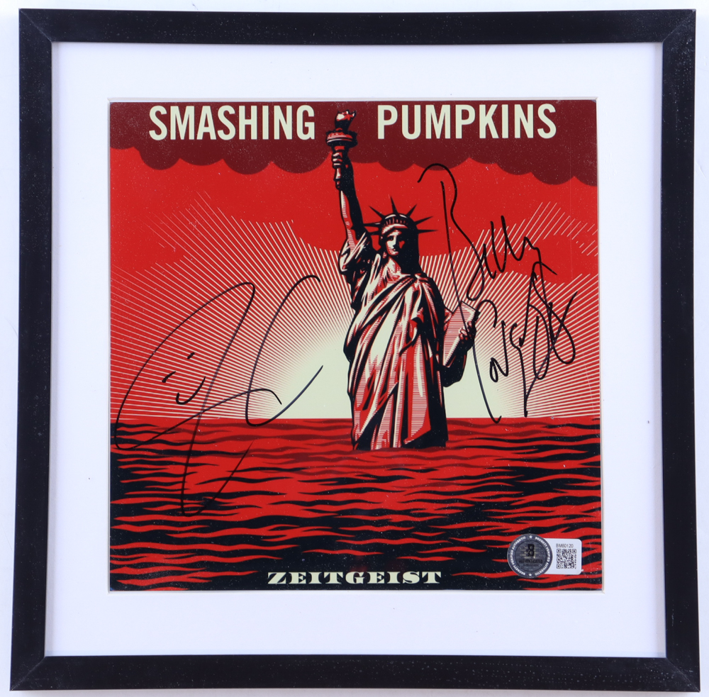 Custom frame measures approximately 10" x 10" in size and features a "Zeitgeist" record insert that has been hand-signed by Billy Corgan & Jimmy Chamberlain