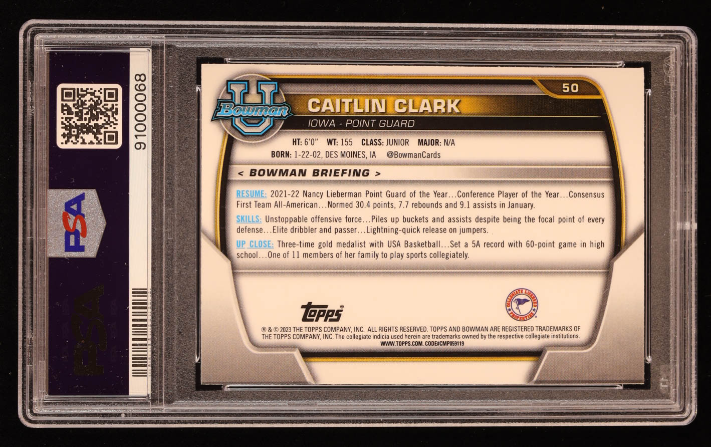 Caitlin Clark 2022-23 Bowman Chrome University #50 RC (PSA 6)