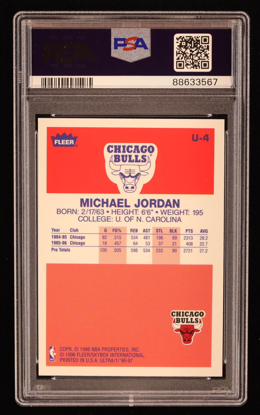 Michael Jordan 1996-97 Ultra Decade of Excellence #U4 (PSA 9)
