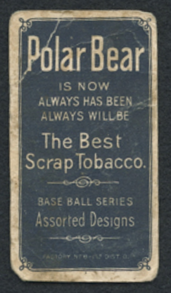 1909-11 T206 #384 Barney Pelty / Vertical with Polar Bear Back