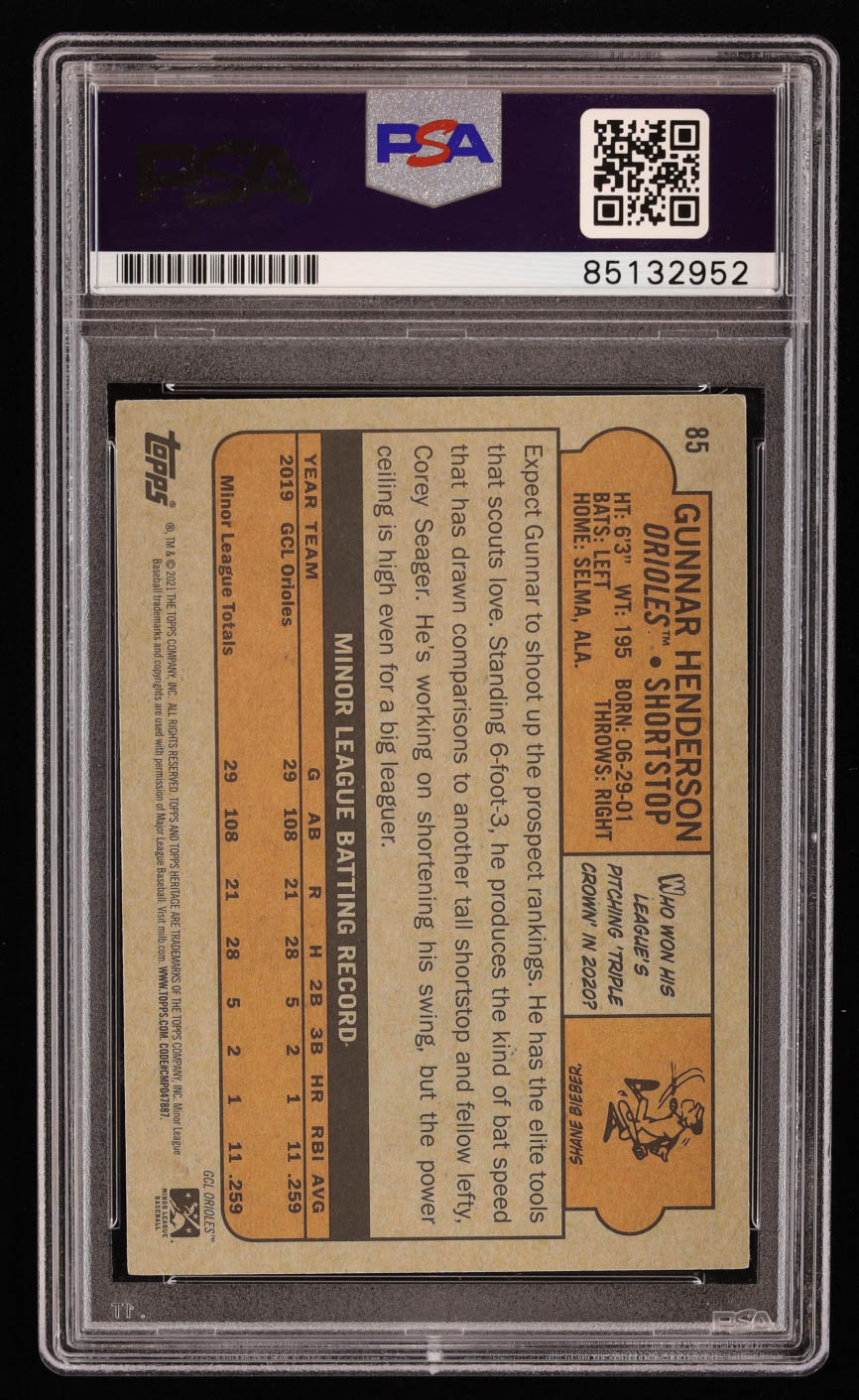 Gunnar Henderson Signed 2021 Topps Heritage Minors #85 RC (PSA)
