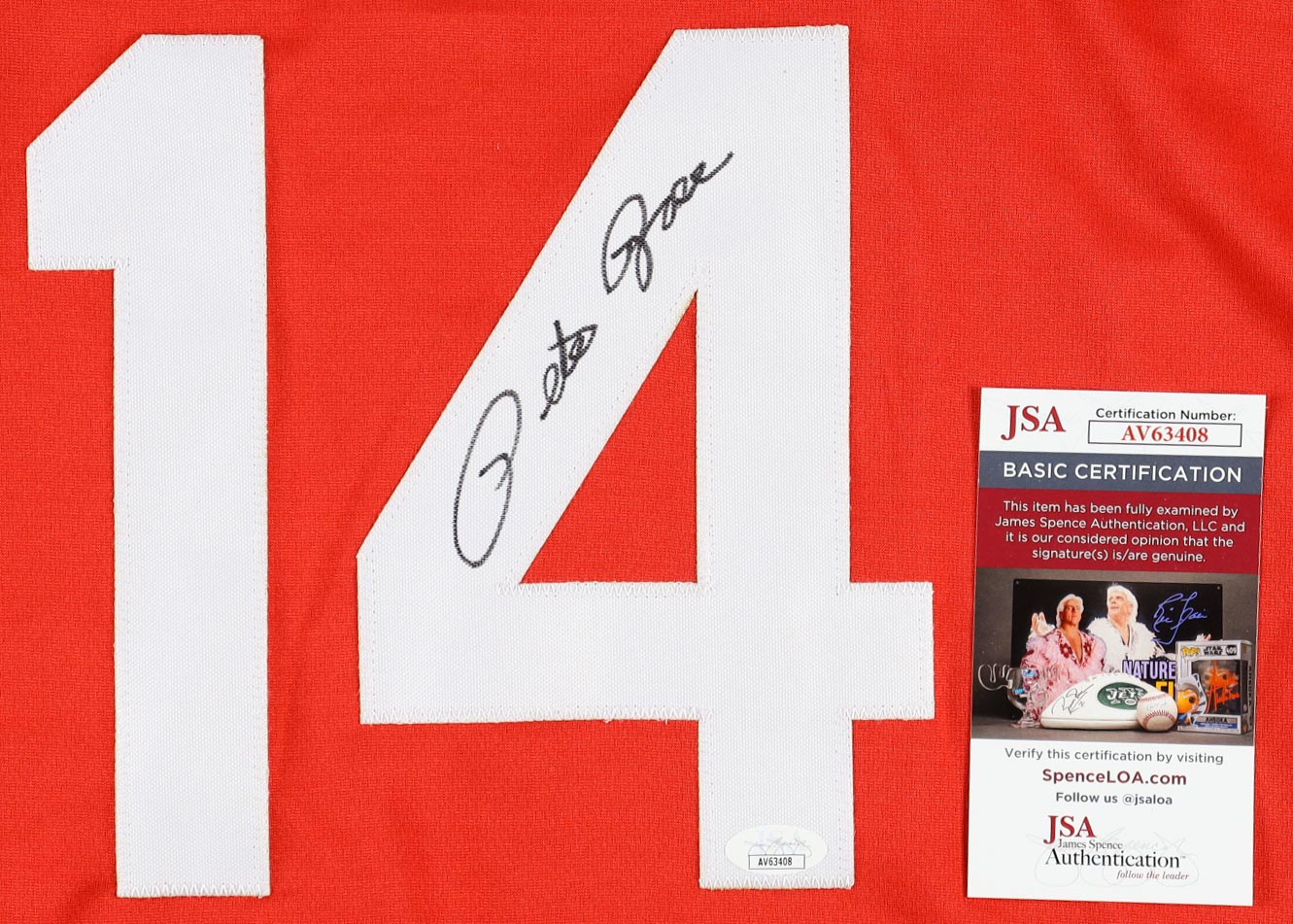 Custom jersey. Everything is sewn on, size XL. Has been hand-signed by Pete Rose.