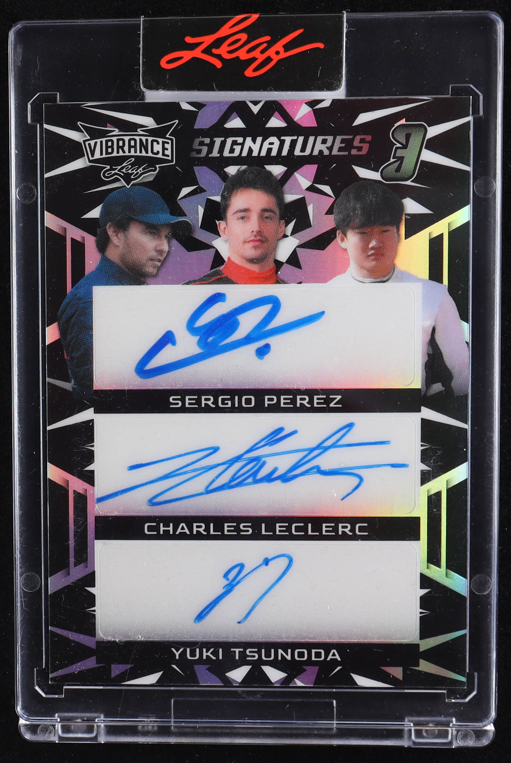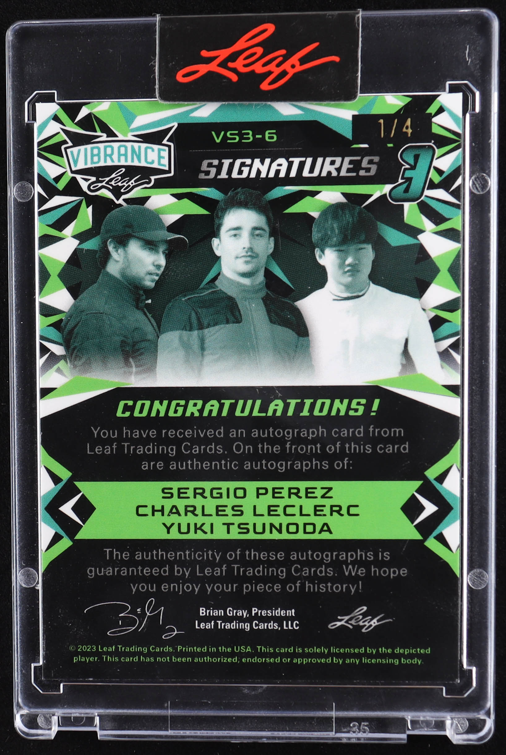 Sergio Perez / Charles Leclerc / Yuki Tsunoda 2023 Leaf Vibrance Vibrance Signatures 3 Prismatic Black #VS36 #1/4